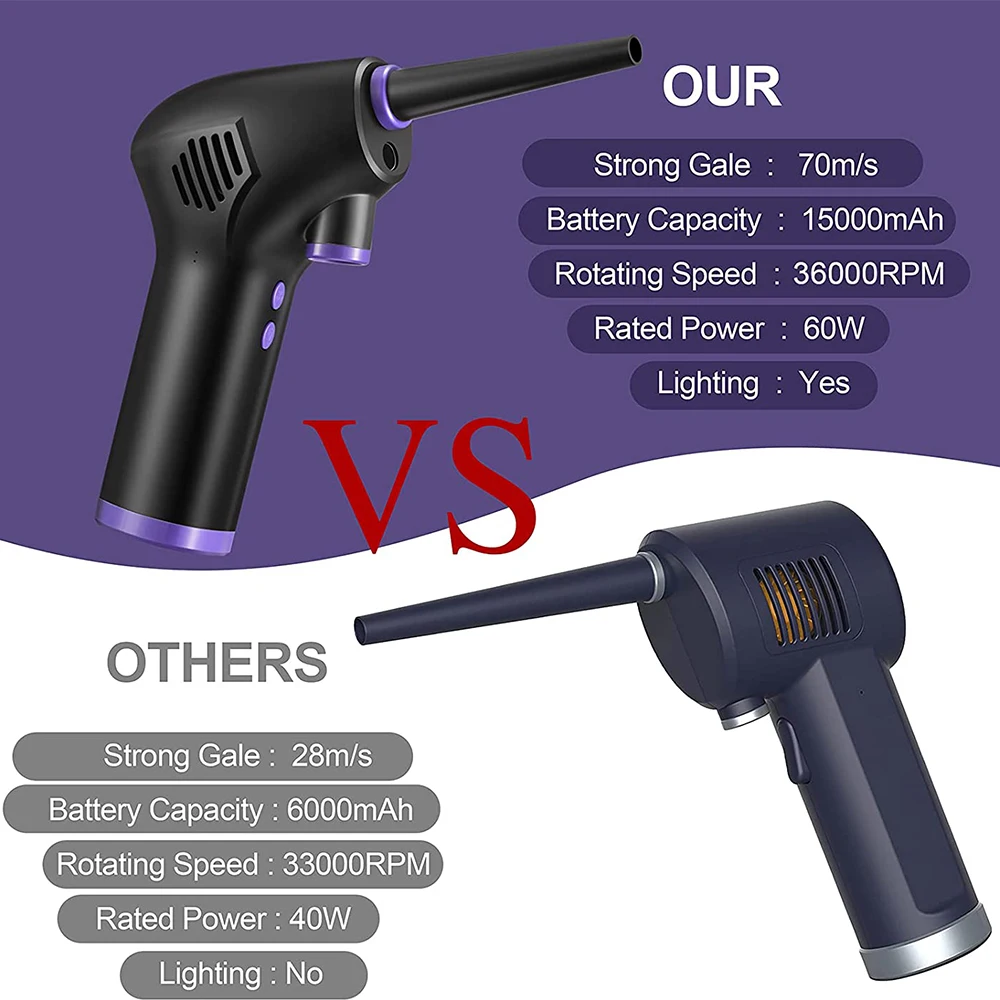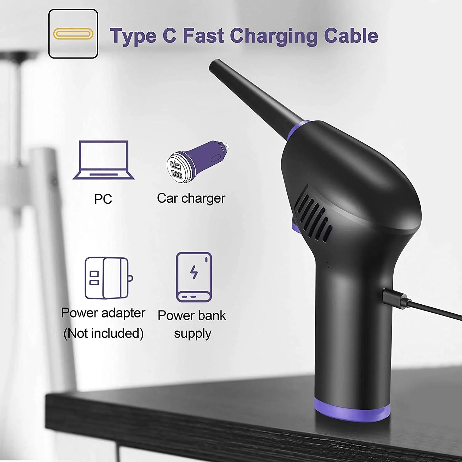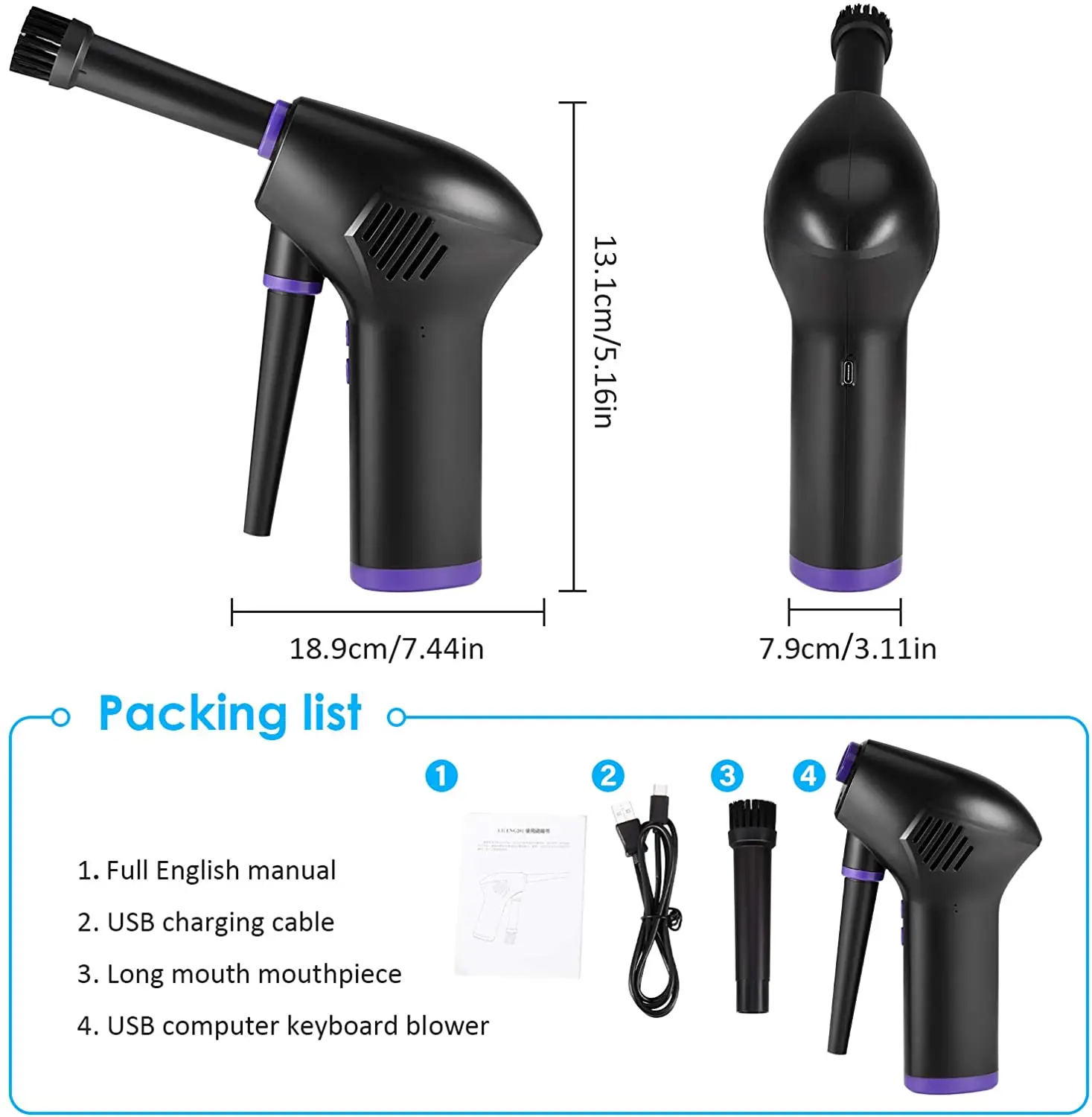 1. Please insert the USB charging cable into the USB charging port of the blower, the red light flashes when charging, and the red light is always on when it is full.