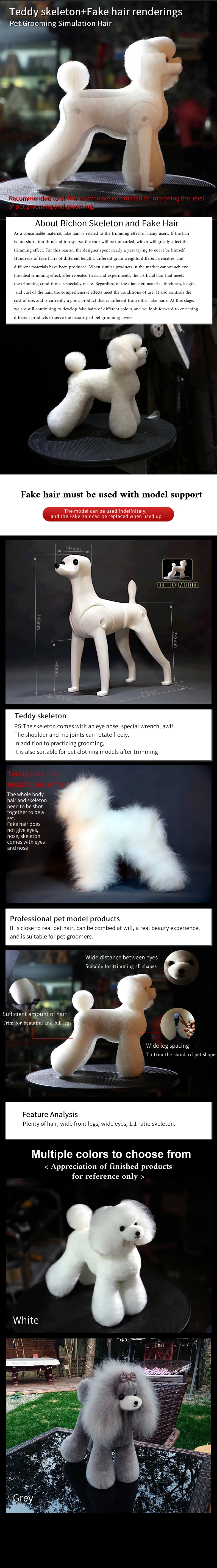 Crane Pet Grooming Teddy Bear Mannequin Model Dog 1 Dog With 1 Whole Body Wig 1+1 Kit High-quality Professional Practice Use