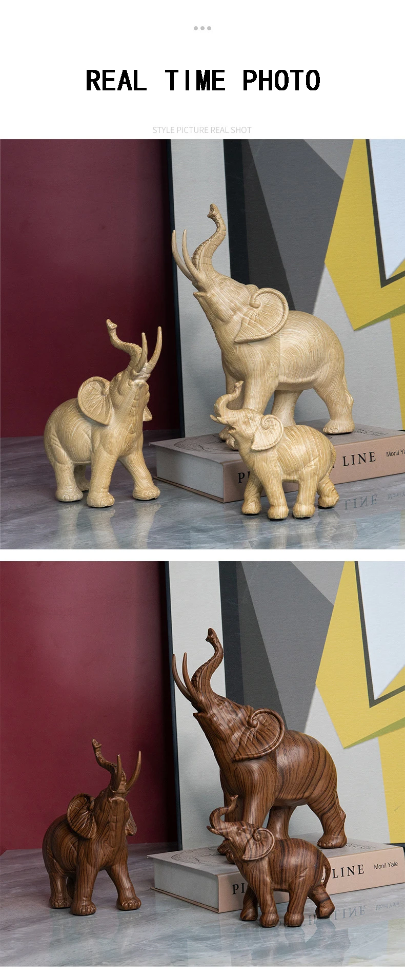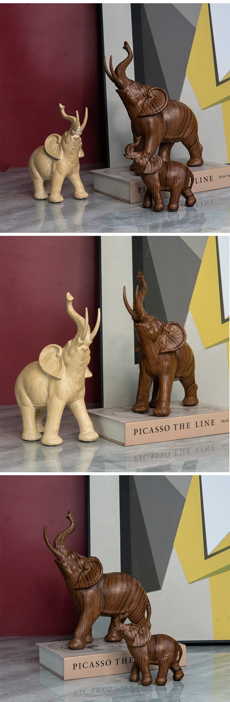 Creative New Wood Grain Elephant Resin Statue Crafts Home Decorations Office Exhibition Hall Living Room Decoration Sculpture