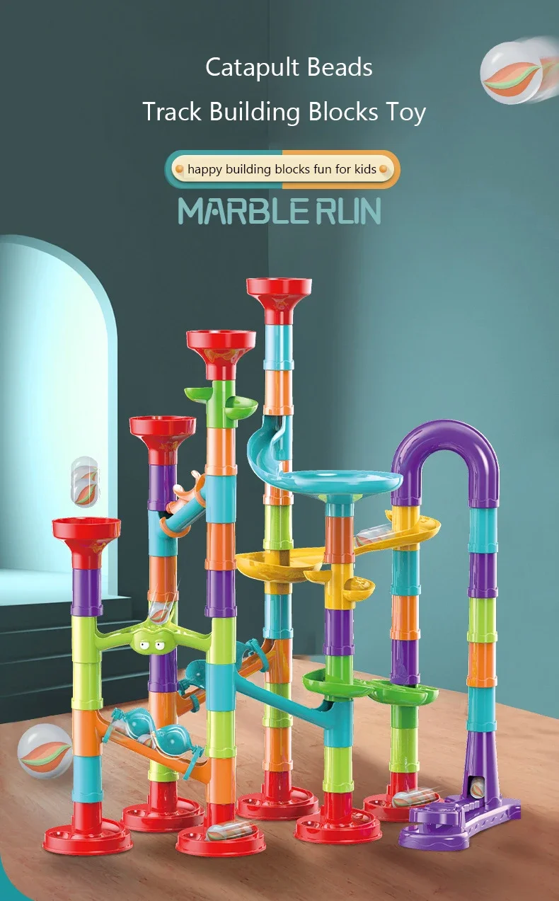 - Create your own maze model by using your imagination, and watch the marbles race through the track.