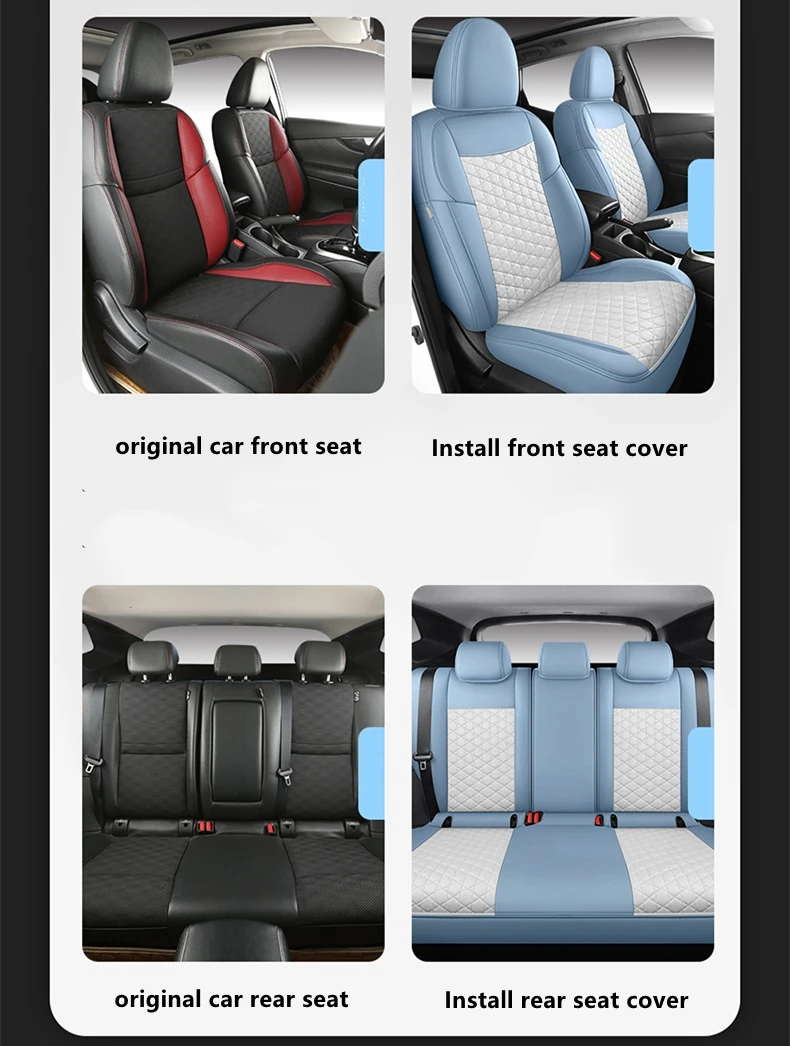 These full-cover seat covers are strictly customized according to the original seats sizes, accurately covering the original seats, protecting the original seats from wear, stains, and animal hair, and giving your car interior a new look.