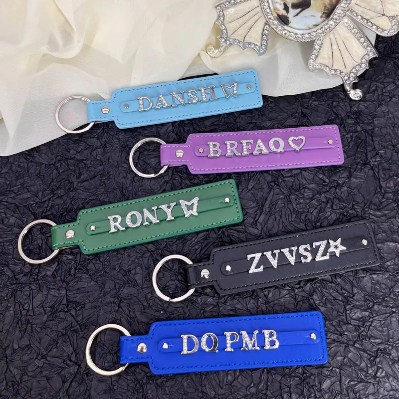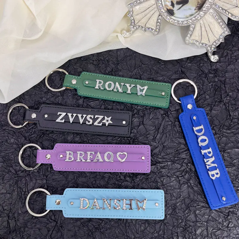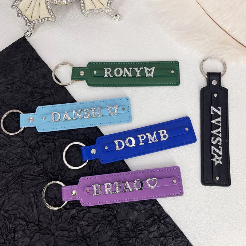 Custom Name Key Chains Leather Keyring Crystal Letters Key Ring For Women Men Custom your Name Gifts Accessories Car Strap Waist
