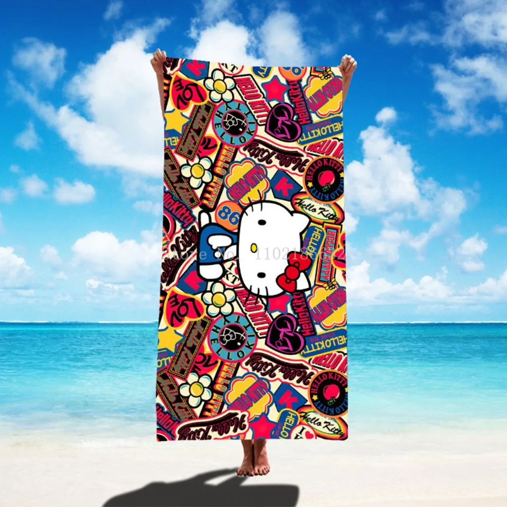 Cute Hello Kitty Children Bath Towel Cartoon Kids Baby Girls Boys Absorbent Washcloth Beach Towel Blanket