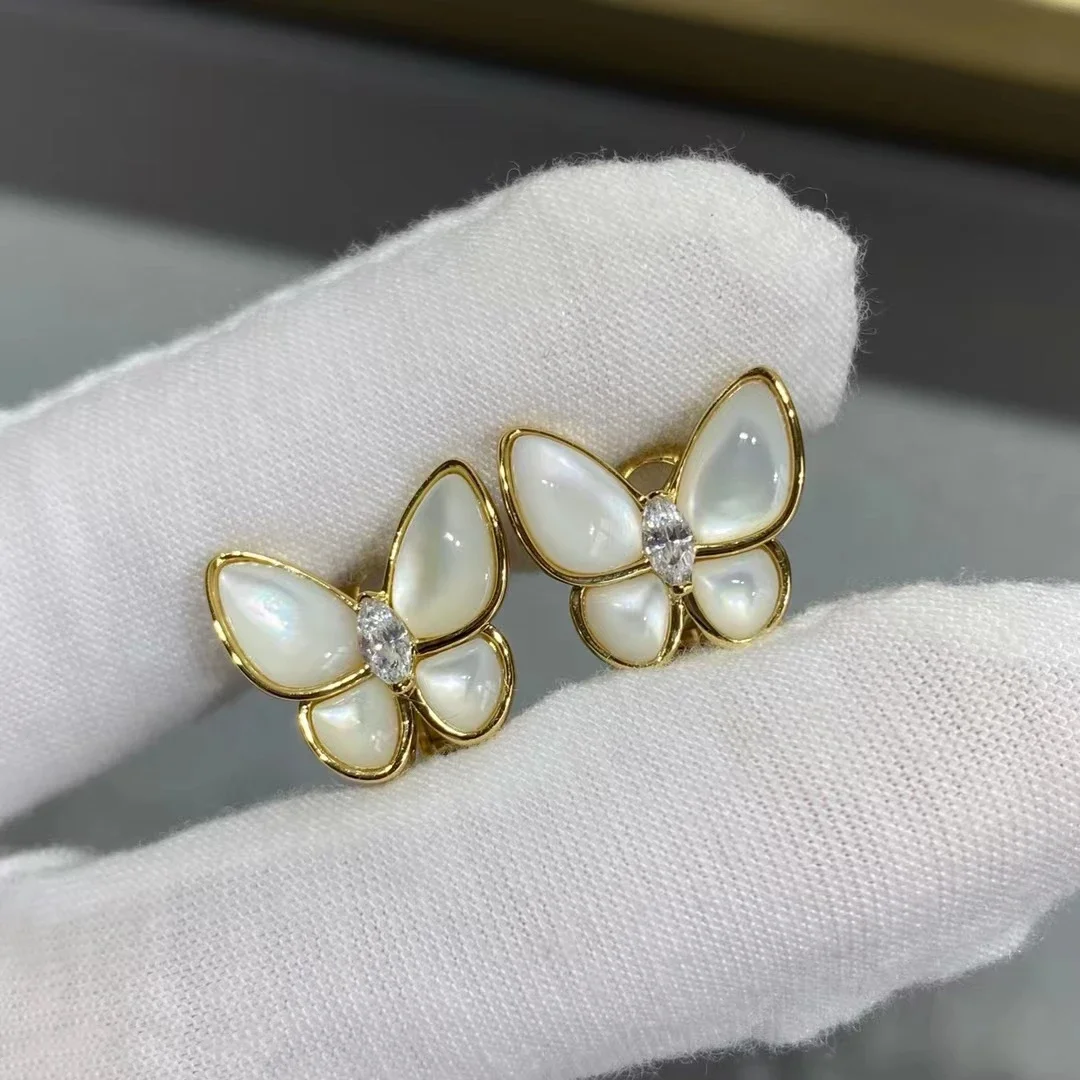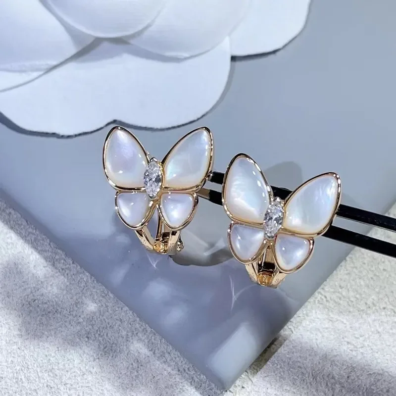 • CY Classic 925 Sterling Silver White Mother Of Fritillaria Butterfly Stud Earrings Women Fashion Luxury Brand Fine Jewelry Gift