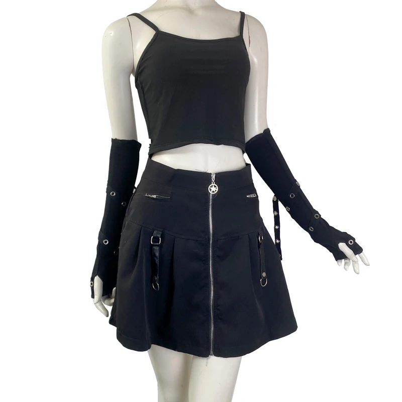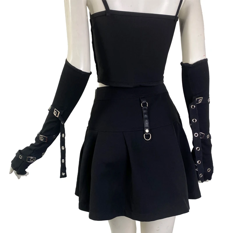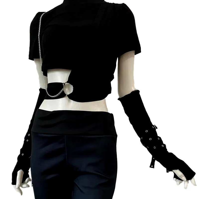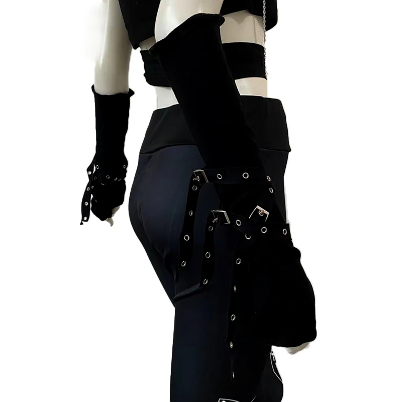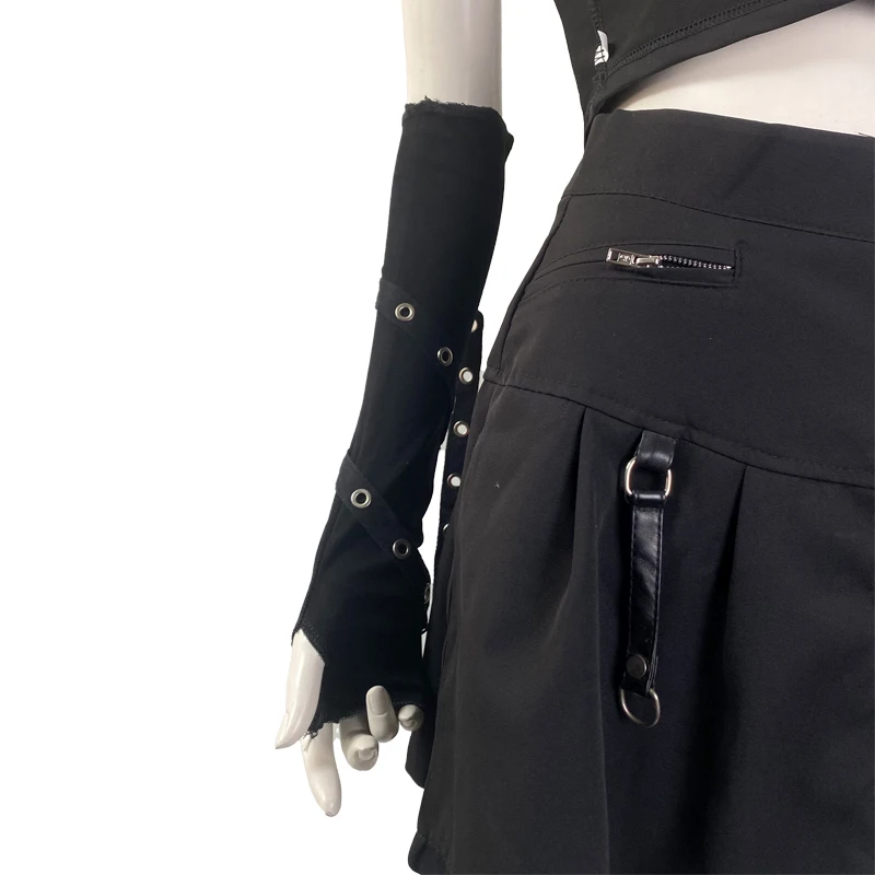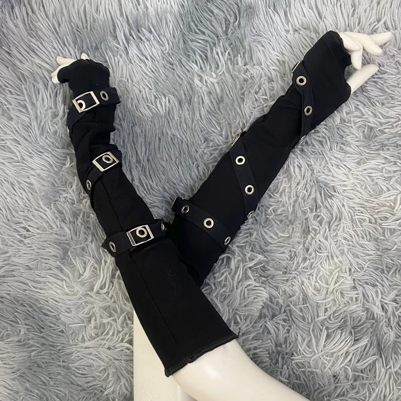 Dark Goth Eyelet Ribbon Cool Girl Man Elbow Length Outsleeve Gloves Black Gothic Unisex Punk Fingerless Glove Harajuku Mittens