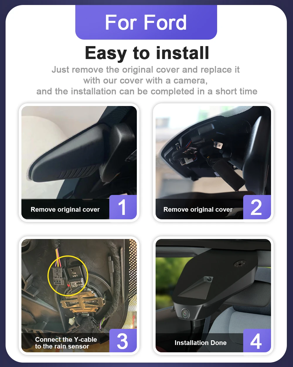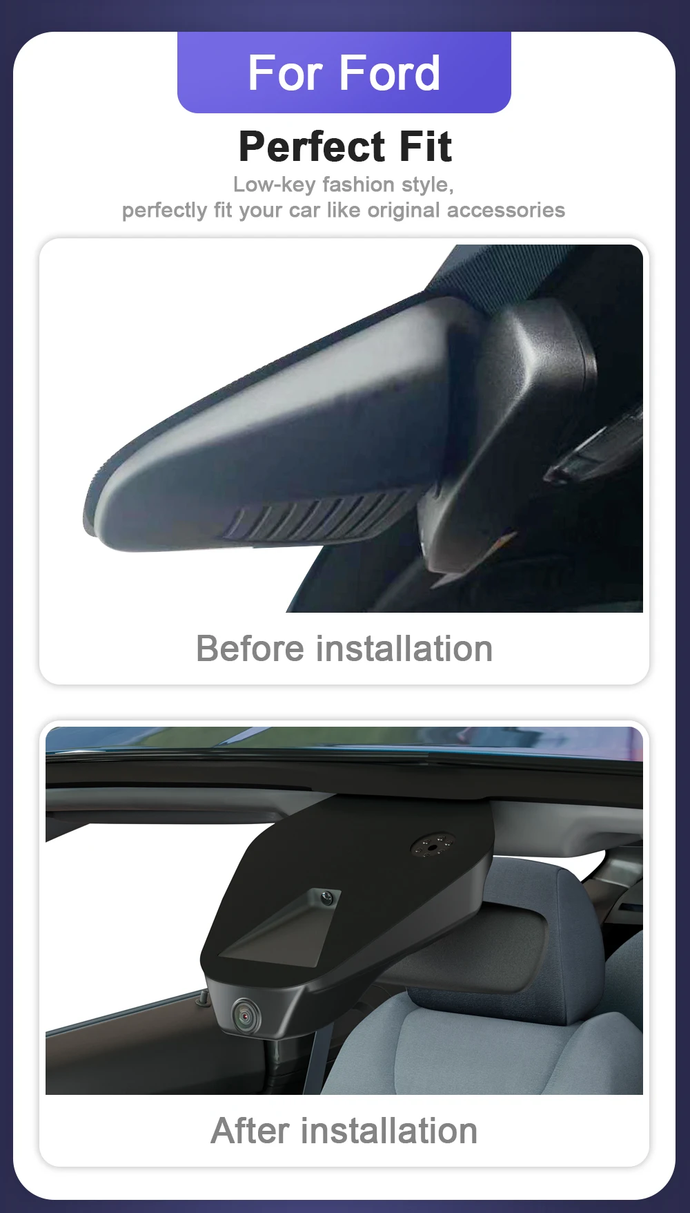 Just remove the original back cover and replace it with our dashcam and it takes a short time to install.