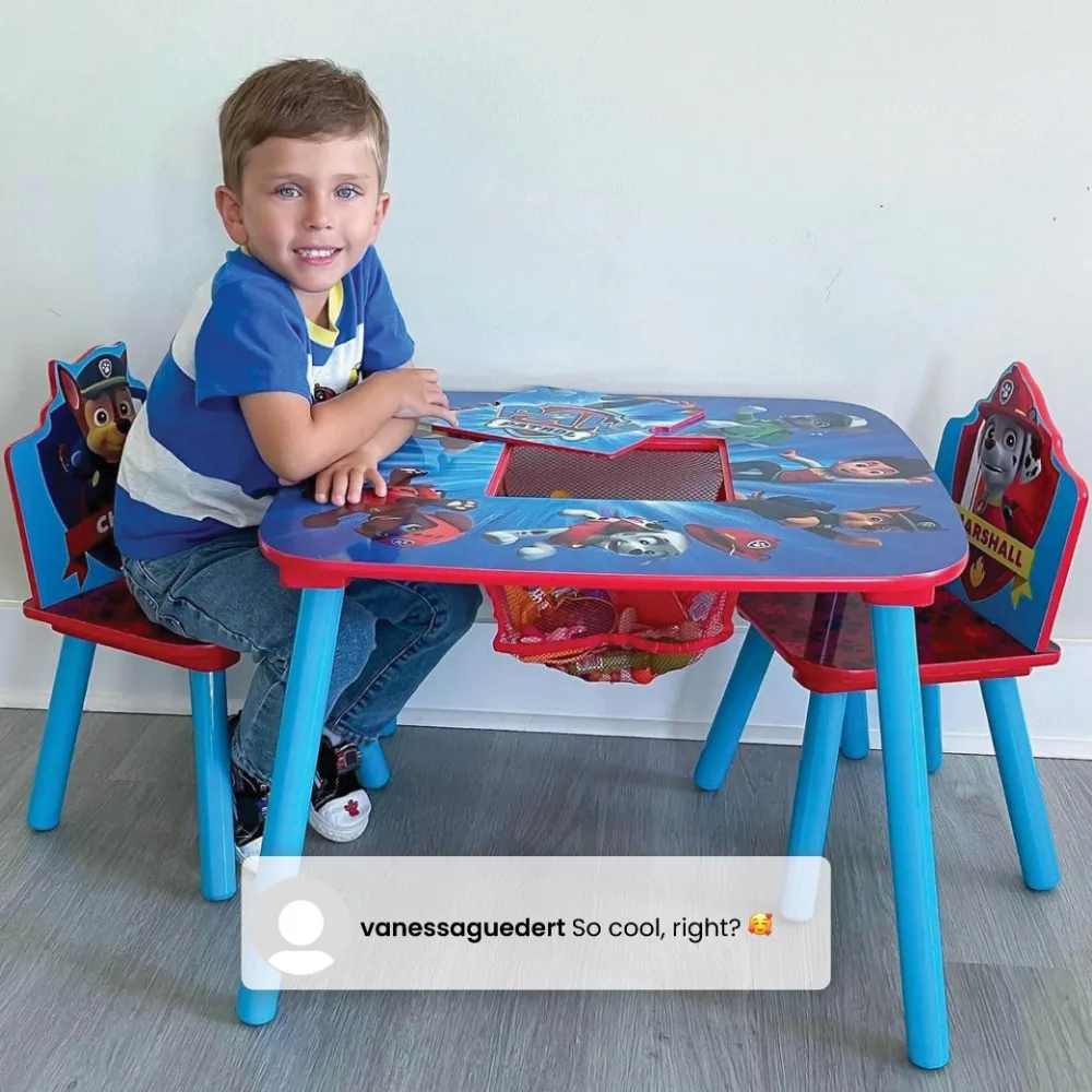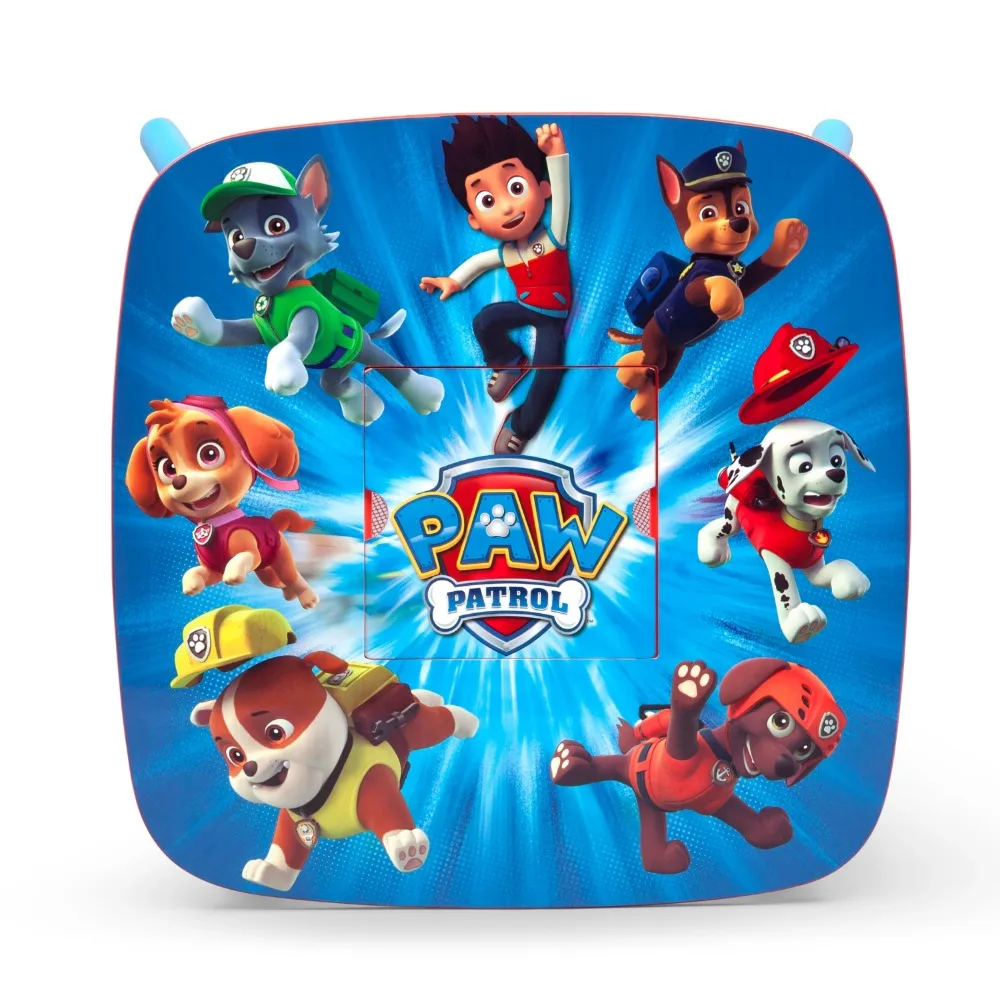 Your kid's favorite crime-fighting canines come to life on this Delta Children Paw Patrol Table and Chair Set with Storage. Featuring colorful graphics of the coolest pack of heroic puppies and their tech-savvy leader. The spacious tabletop with built-in storage in the center makes tackling homework, crafting, or snack time easier. The kid's furniture set is made of engineered and solid wood, and it is scratch resistant. Children can use the storage for crayons, markers, coloring books, and a variety of other school items. One chair has the character and name Chase and the other has the character and name Marshall.