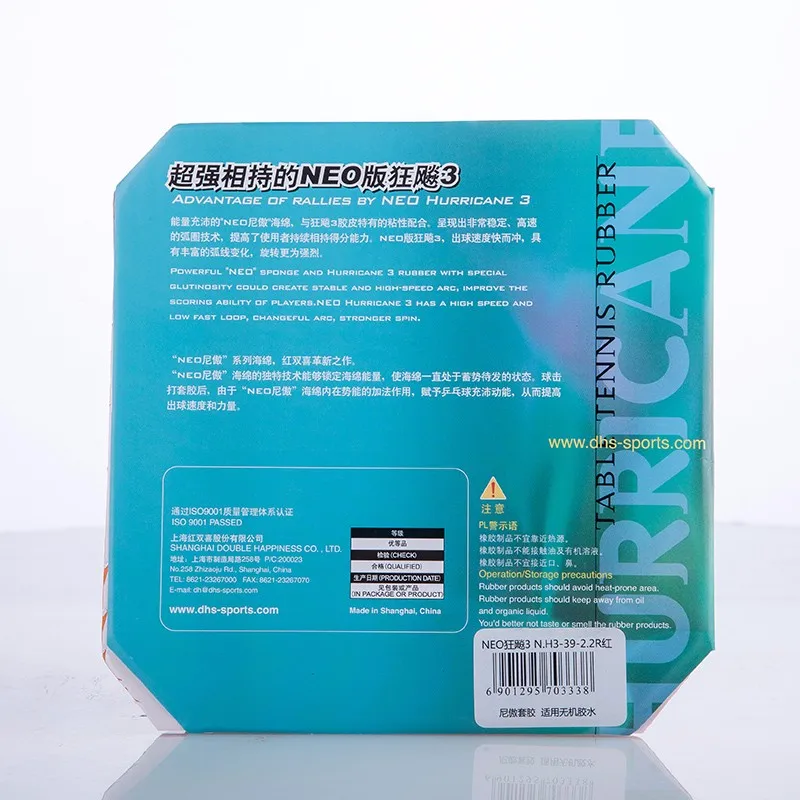 Powerful "NEO" sponge and Hurricane 3 rubber with special glutinosity could create stable and high-speed arc, improve the scoring ability of players. NEO Hurricane 3 has a high speed and low fast loop, changeful arc, stronger spin.
