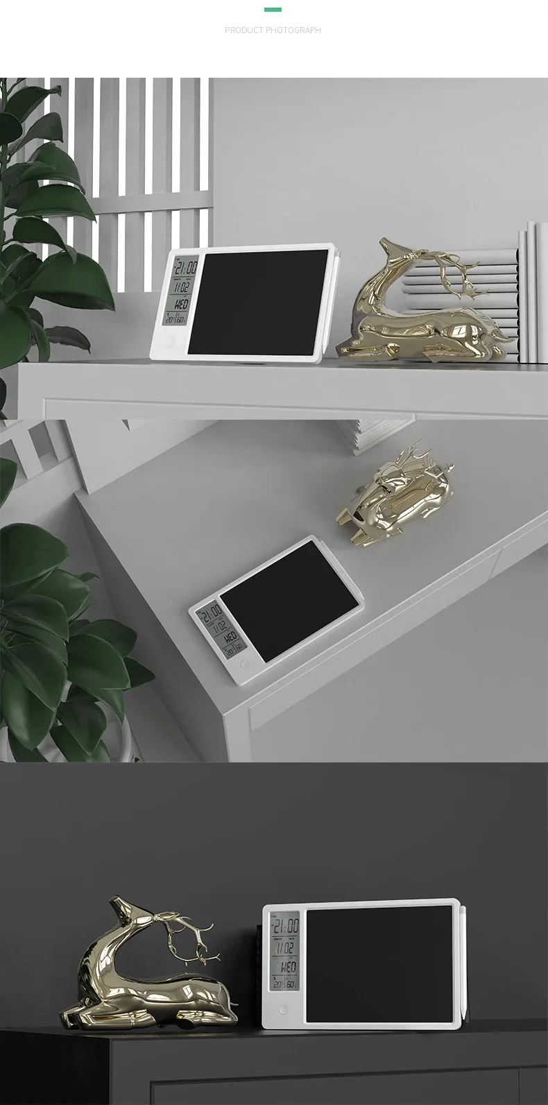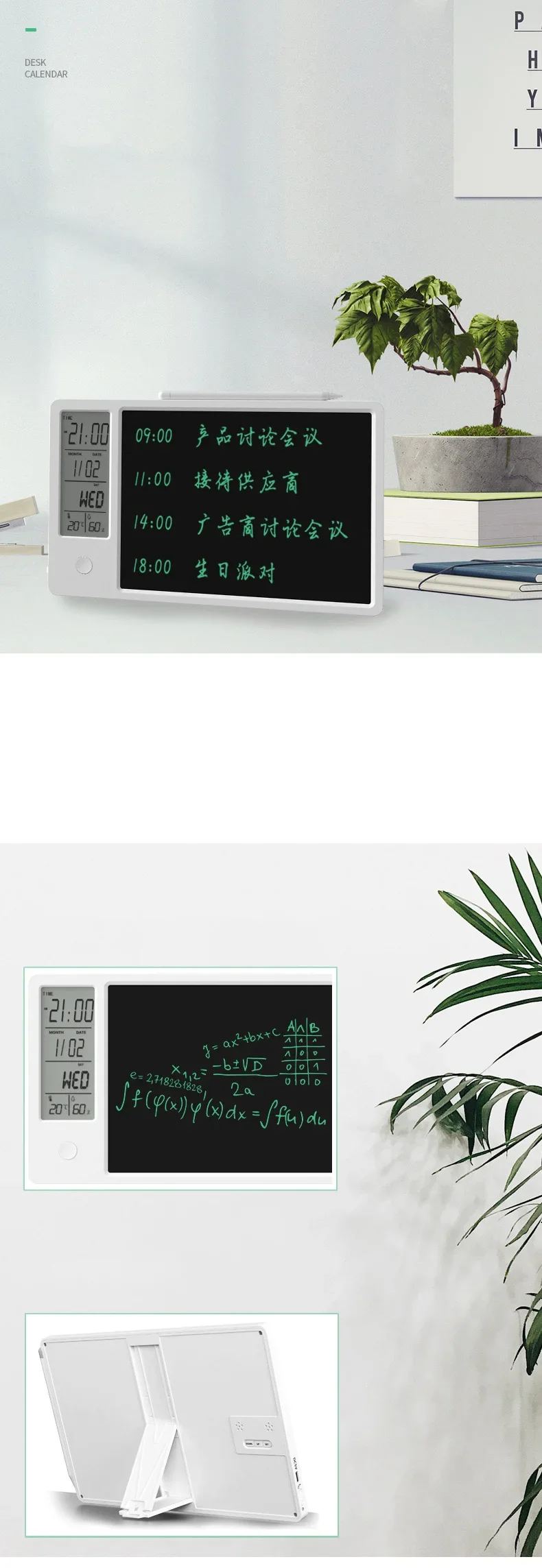 Digital Clock Rechargeable LCD Handwriting Tablet Drawing Board Electronic Writing Calendar Office Home Desk Decoration