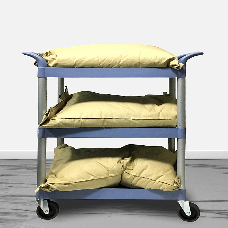 This service cart is perfect for use in garages, offices, workshops, warehouses, offices, homes, kitchens, etc. Made of durable polypropylene and aluminum, it is easy to clean, will not dent and is rust-resistant. Pushers on each side provide versatility. Includes 4 non-destructive swivel casters that make maneuvering the cart easy.