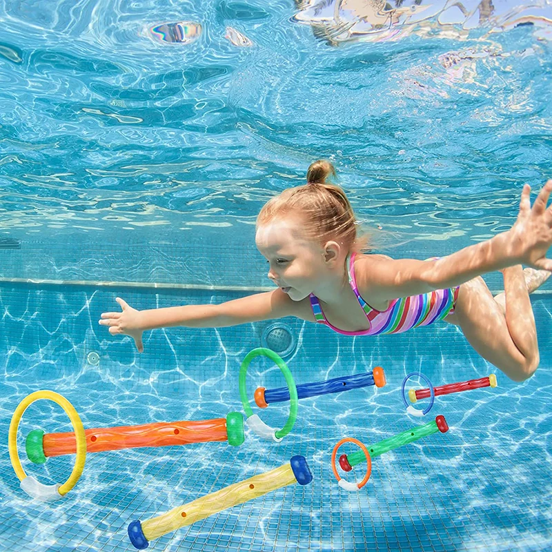 Ultimate Swimming Training Toy Set: Our diving toy set provides your child with an excellent opportunity to improve their diving skills. The underwater diving ring and diving rod are fixed to the bottom of the pool in an upright position, making it easy to grasp during diving.