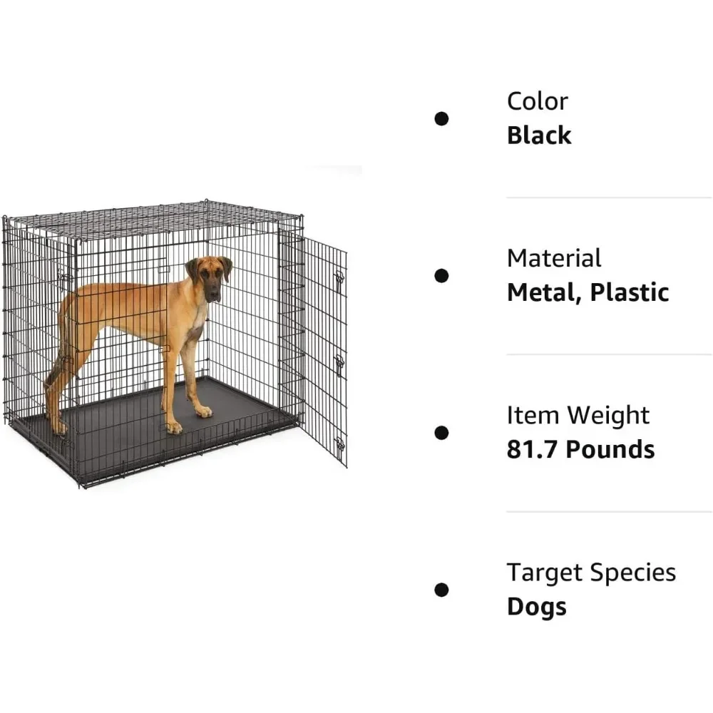 - Giant double door metal dog crate measures 54 Lenght x 37 Width x 45Height Inches & weighs 80.2 pounds, Ideal for extra Large dog breeds weighing over 90 pounds (Great Dane)