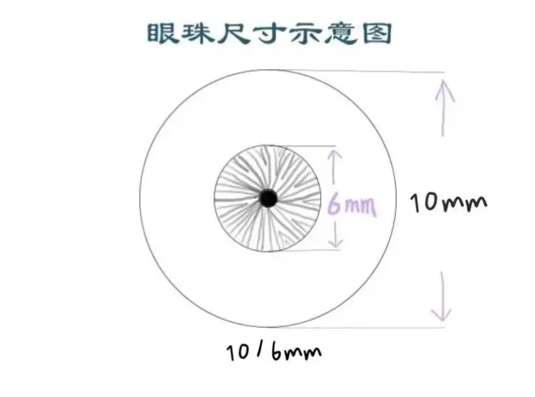 (For example, for size 10-6, the first number "10" is the length of eyeground 10 mm, and the second number "6" is the length of iris 6 mm)