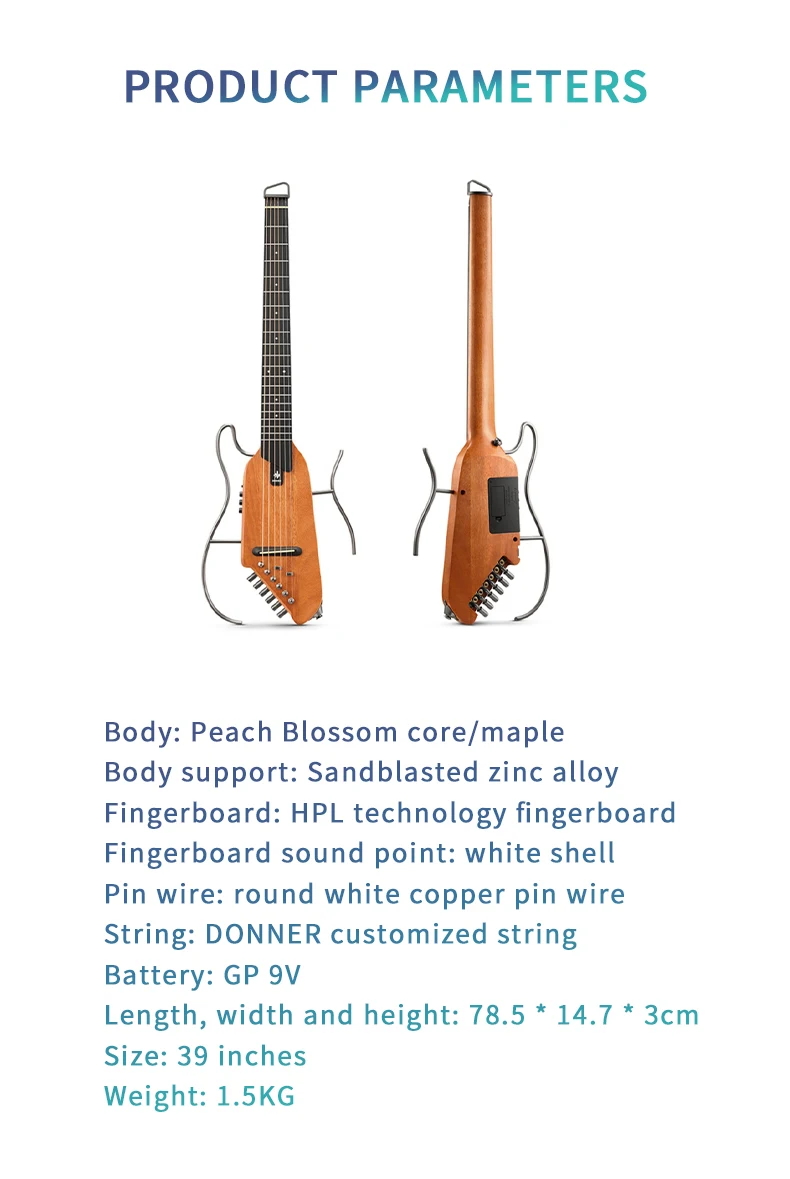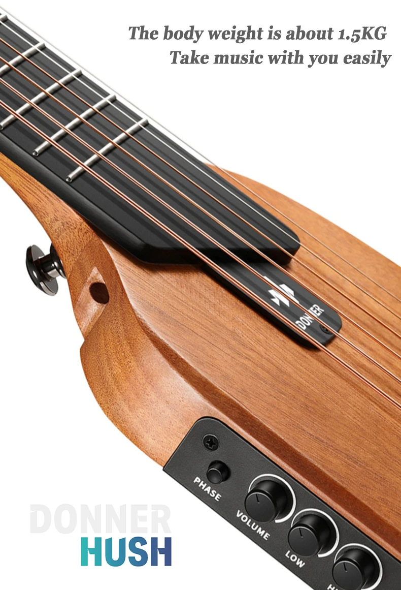 Choose Options Quick view Donner HUSH-I Silent Acoustic Travel Guitar for Quiet Mute Practice HUSH-X Professional Rock Beginner Headless Electric Guitar $392.95 - $531.76 Product DescriptionAbout Disposable 9V Battery:We ship the guitar with disposable 9V battery via Aliexpress or Cainiao Shipping.
