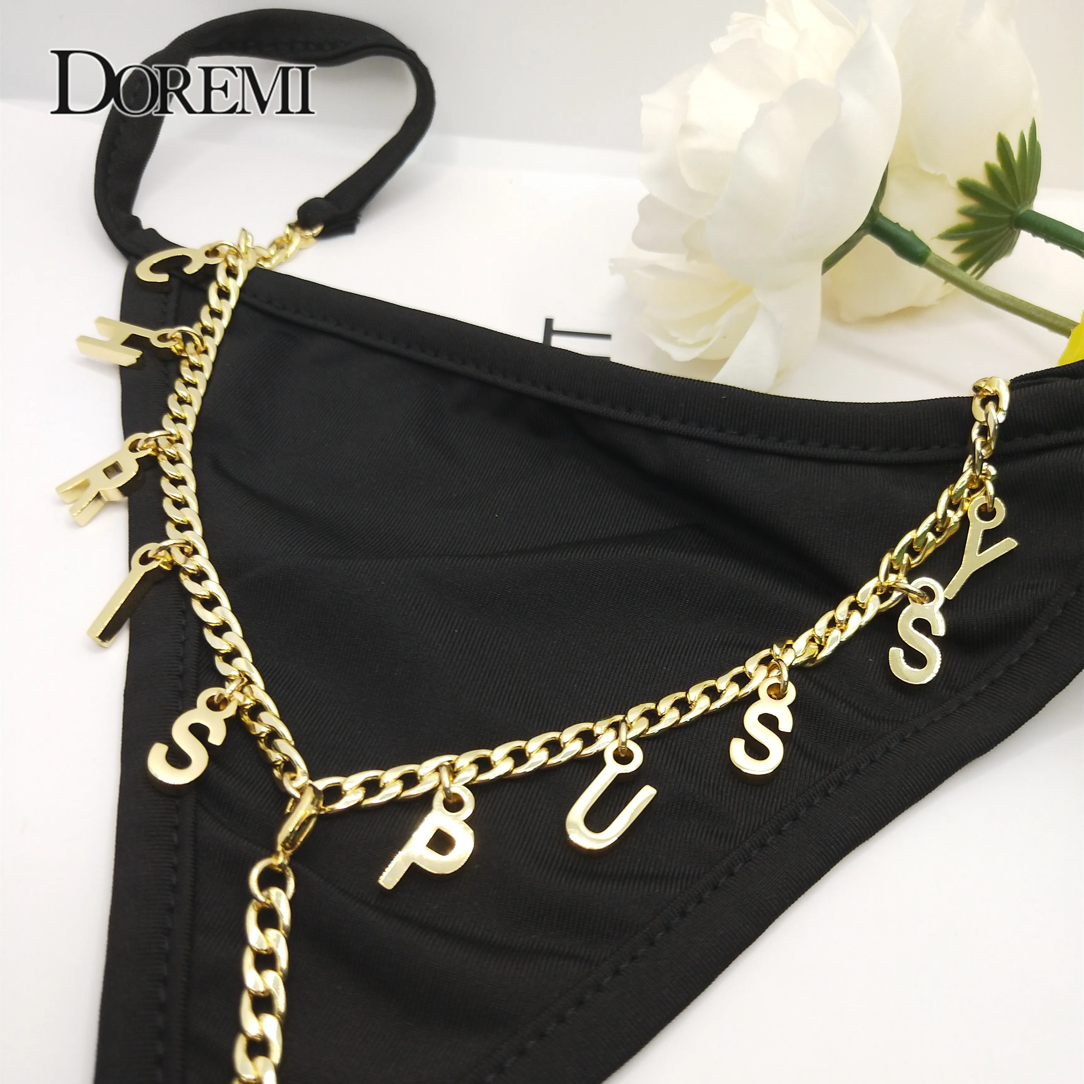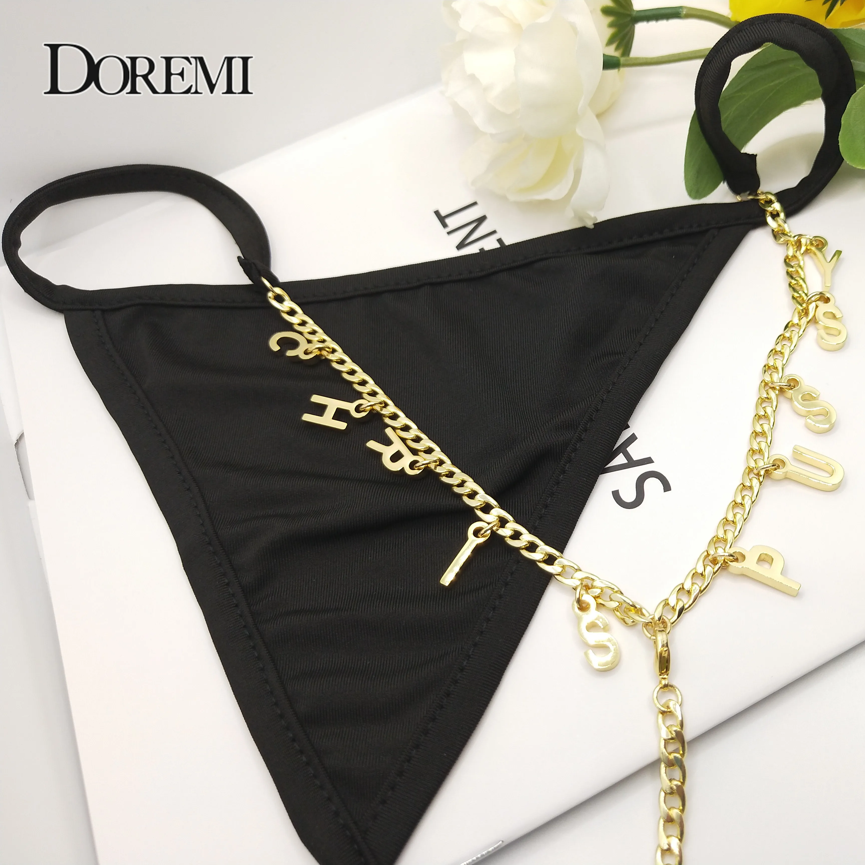 2021 Summer Sexy Body Chain Jewelry Personalized Name Belly Waist Chains for Women Metal Custom Letters Underwear Thong Panties