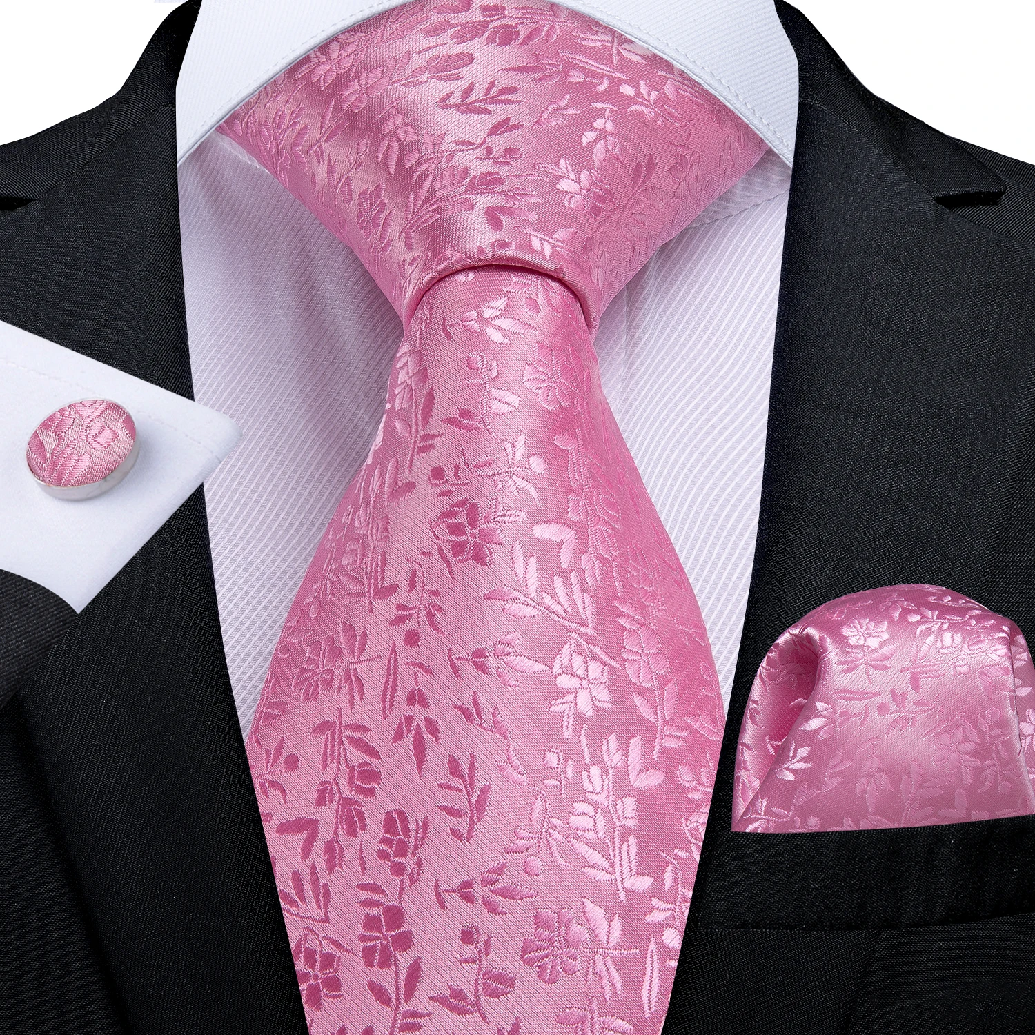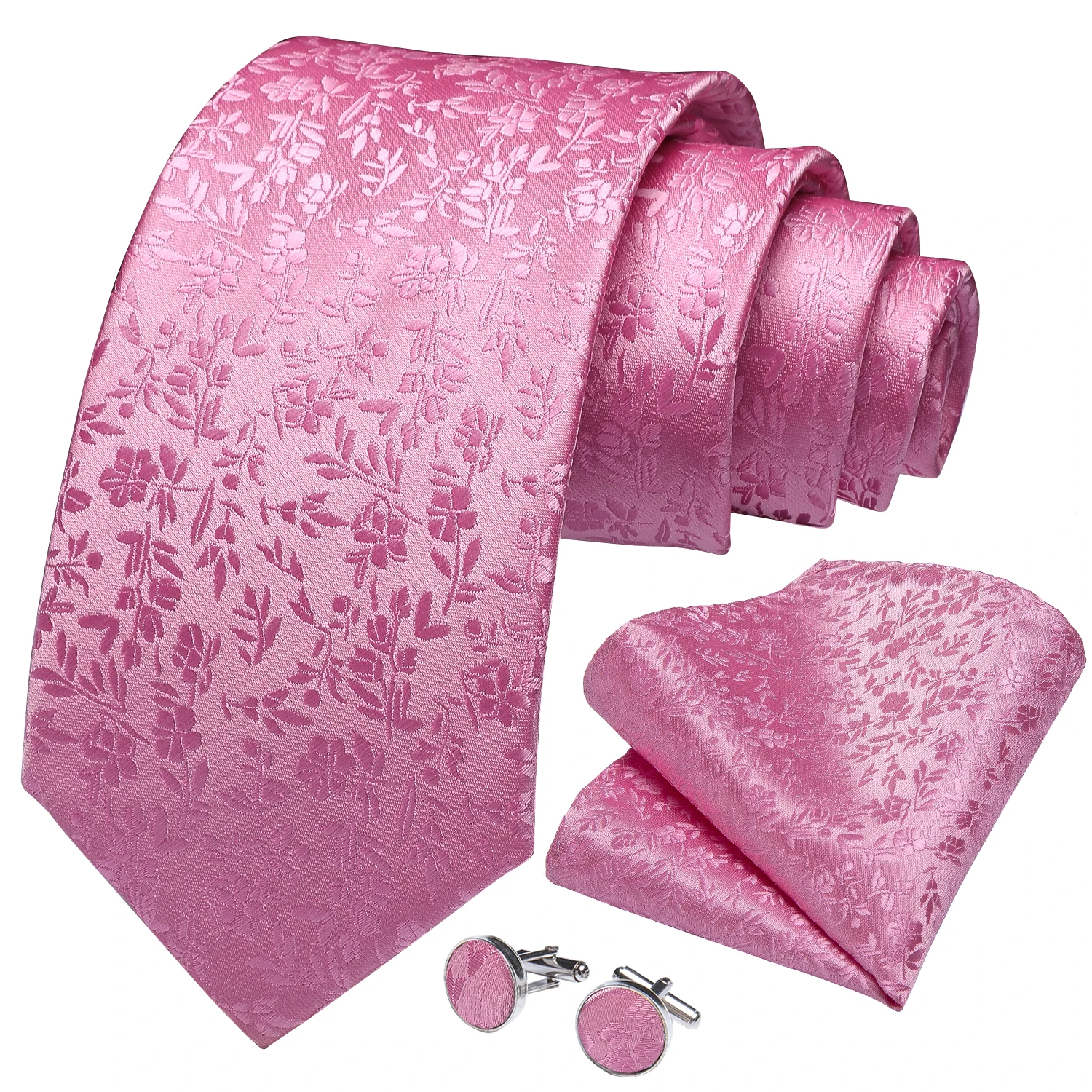 Dot Plaid Paisley Floral Pink Ties For Men 100% Silk Wedding Party Neck Tie Handkerchief Cufflinks Men Gift Cravat DiBanGu