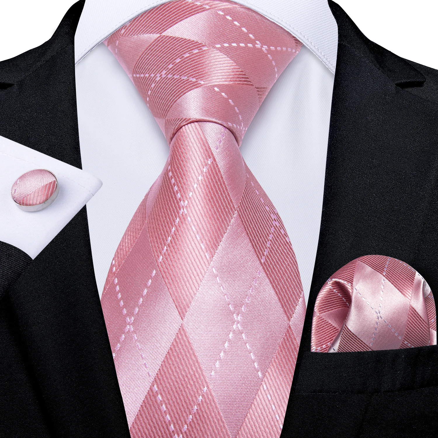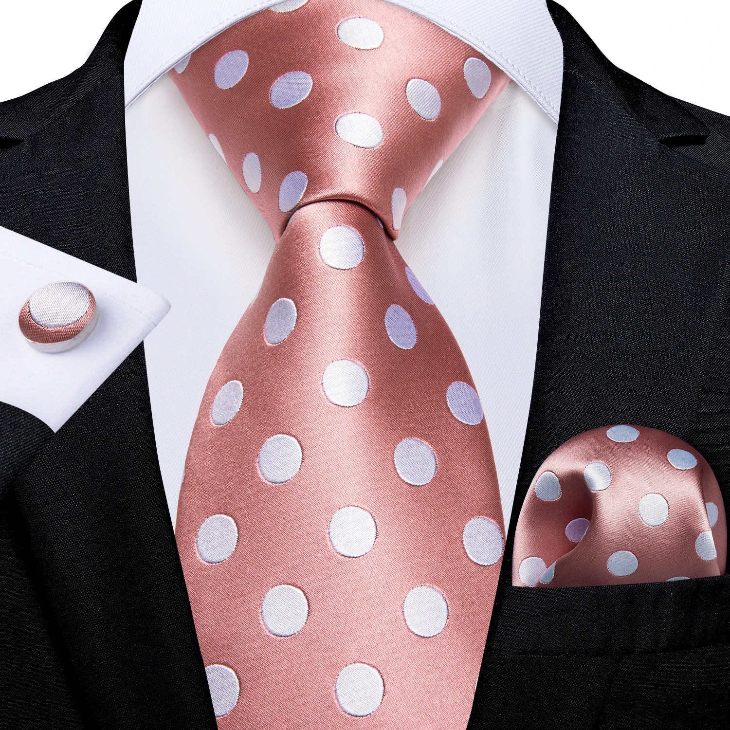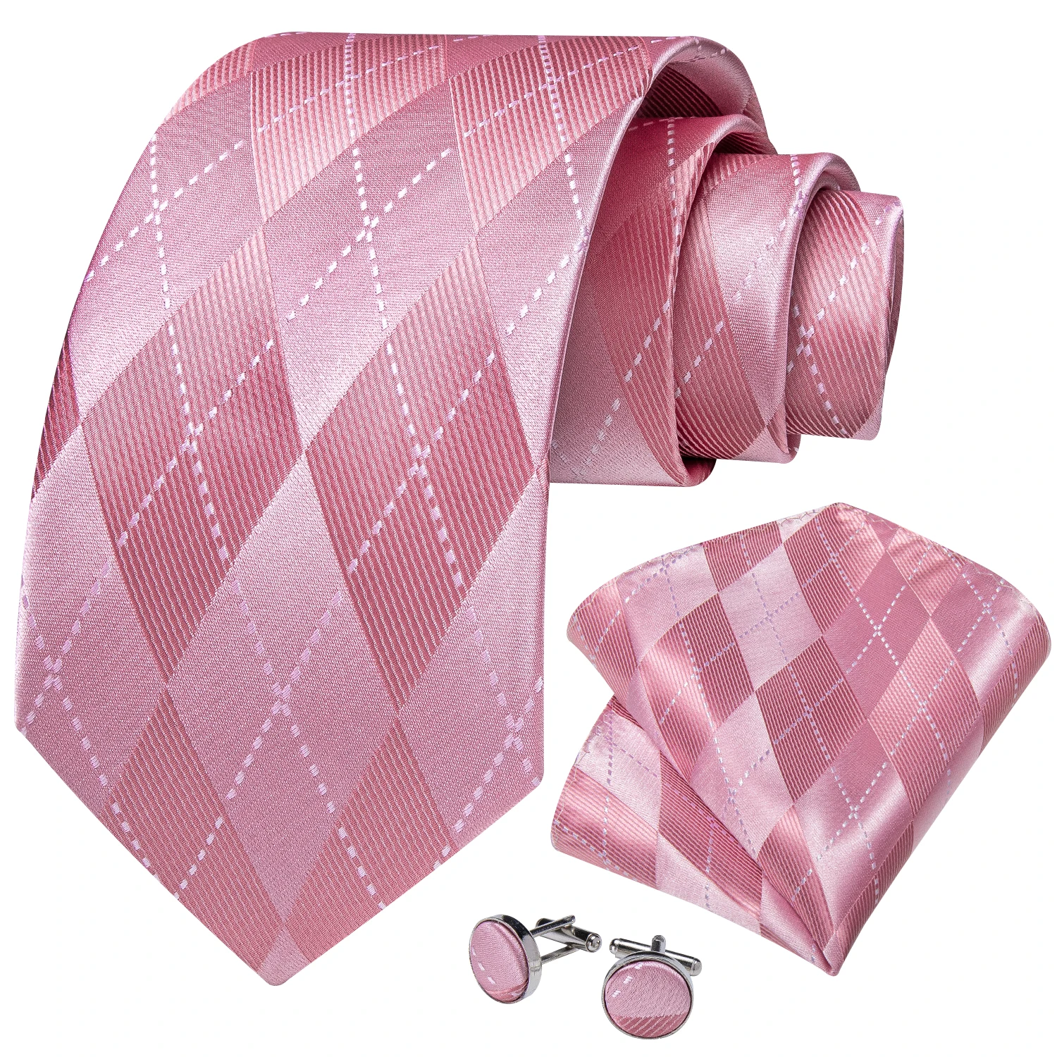 • Dot Plaid Paisley Floral Pink Ties For Men 100% Silk Wedding Party Neck Tie Handkerchief Cufflinks Men Gift Cravat DiBanGu