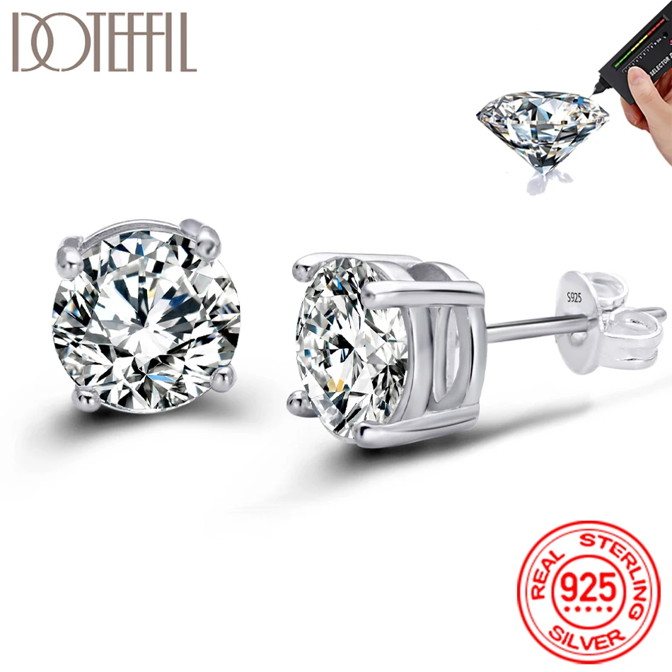 DOTEFFIL 2 Carat D Color Moissanite Stud Earrings For Women Top Quality 100% 925 Sterling Silver Sparkling Wedding Jewelry