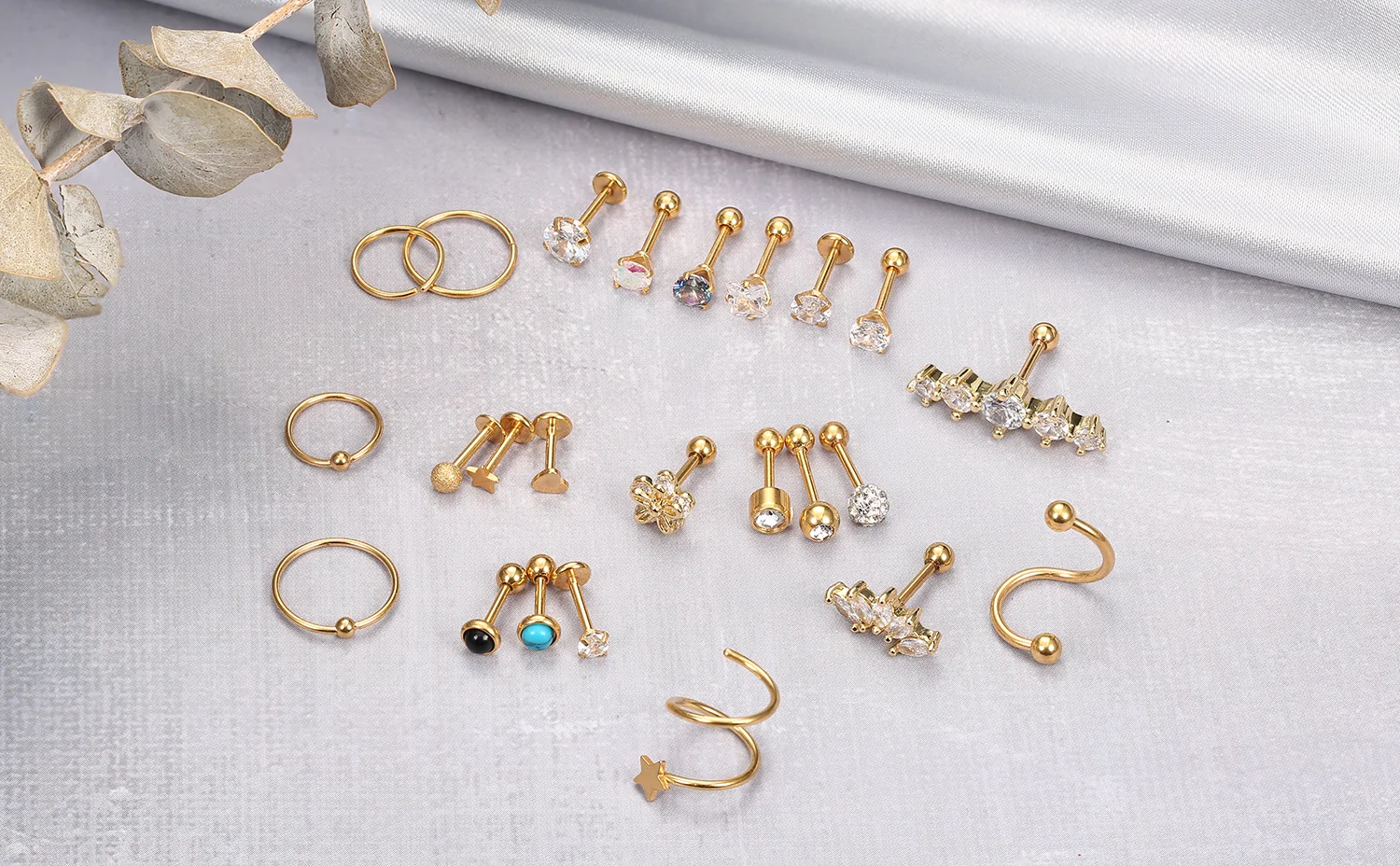 Choose Options Quick view 2pcs Stainless Steel Spiral Twisted Lip Ring Tongue Piercing Heart Star Ear Cartilage Helix Piercing Stud Earring Jewelry Gifts $5.89 - $7.35 Specifications Material: Alloy Category: Earrings Color: Silver Style: round bead, love, star Style: Fashion Size: about 1cm Features: exquisite workmanship, spiral disassembly, non rusting, safe a