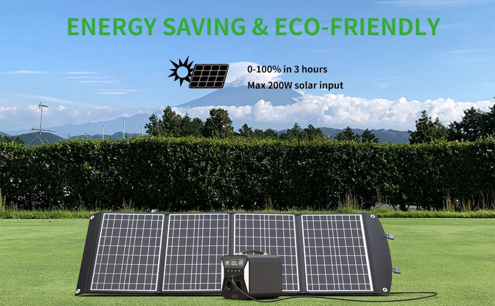 You can recharge the solar power bank by three ways. At home, you can fully charge the solar powered generator via AC outlet (adapter included) about 3 hours. When you be outside, energy storage system can becharged by solar panel(18-24V/100W)(not included) about3 hours, or you can also plug itin car socket about 3 hours to fully recharge.