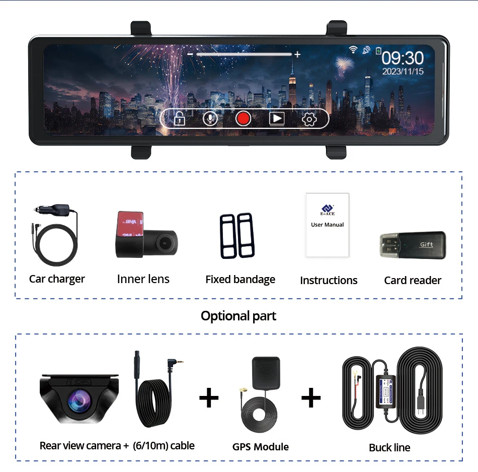 ▶Add Features: Night Vision, 3 Split Screen, 3 Cameras, GPS Tracker, Reverse image, parking monitor, WiFi