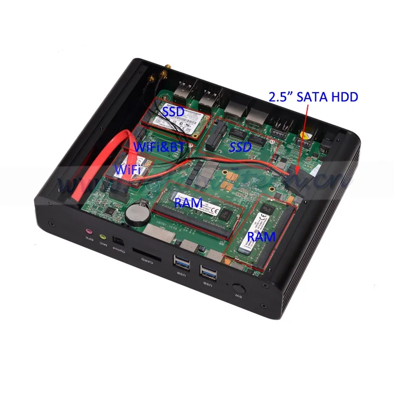 Internal ports | 2*M-SATA3.0 port, support 6Gb/s 1*SATA3.0 port, support 6Gb/s 1*mini-PCIE port(WIFI) 1*mini-PCIE port(WIFI&Bluetooth) |