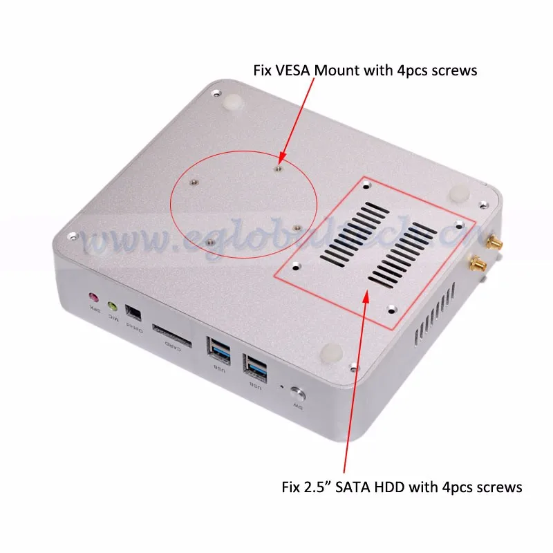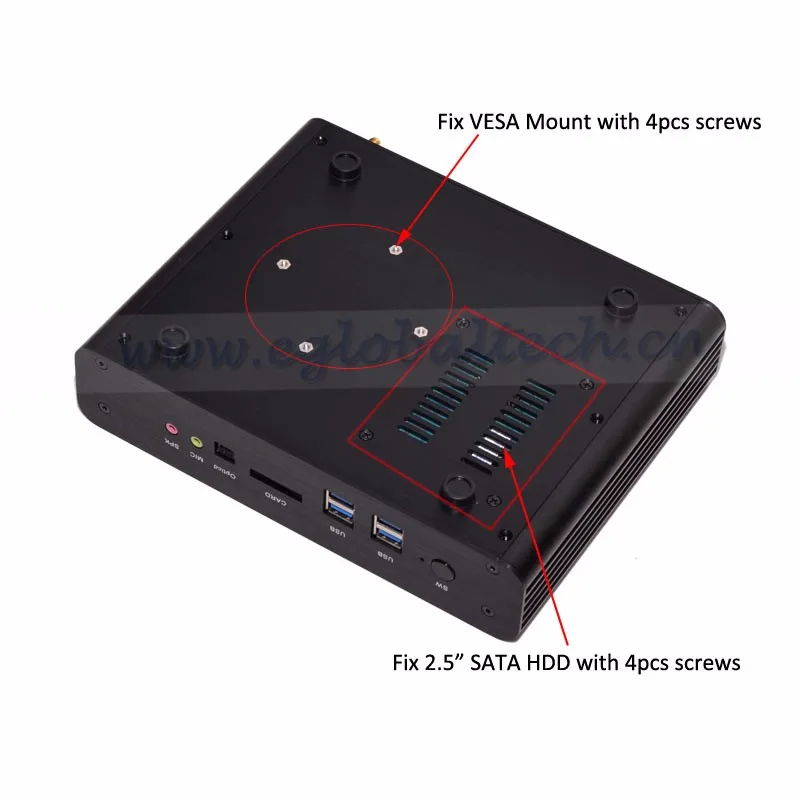 Package Content | Mini PC device, Power Adapter, a Stand Holder, VESA Mount(optional) |