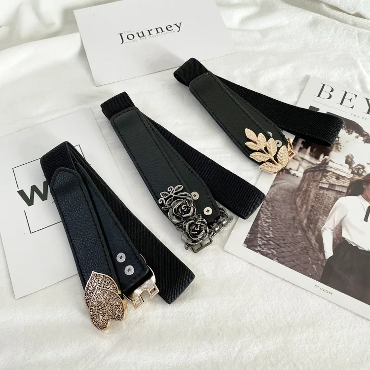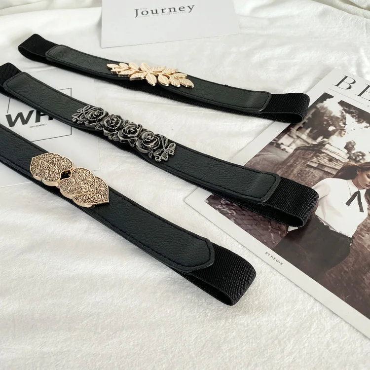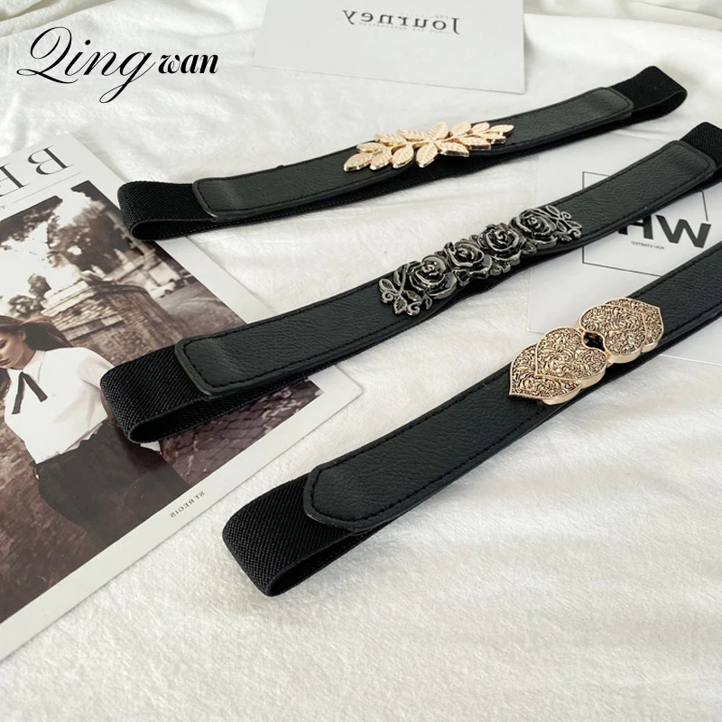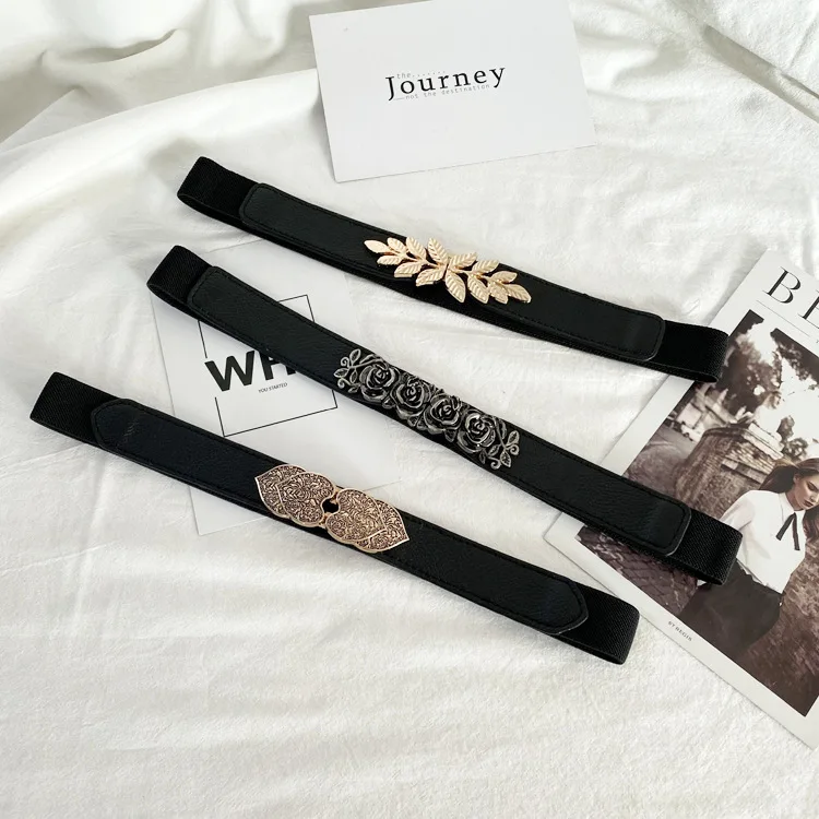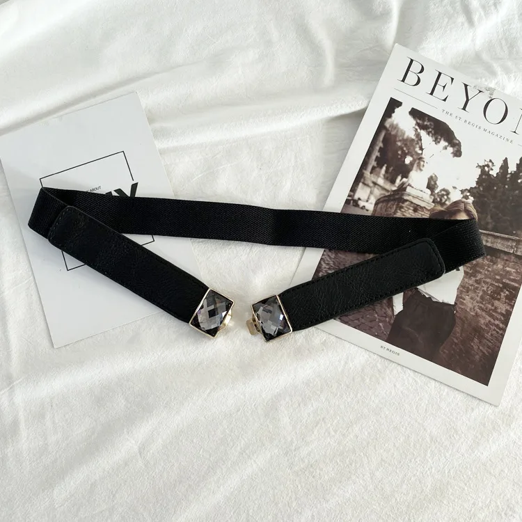 Elastic Metal Buckle Thin Cummerbunds for Women  Fashionable Dress Coat Sweater Decorative Belt Thin Waistband Female