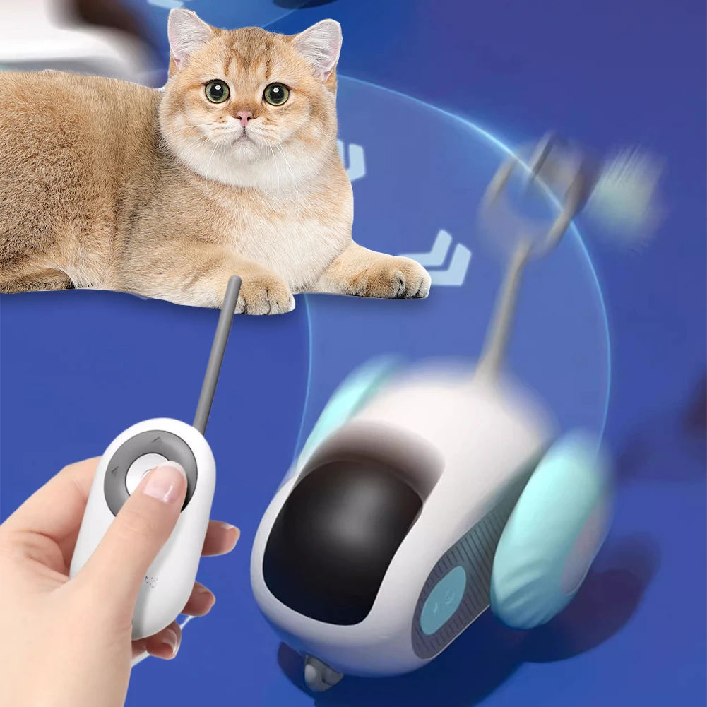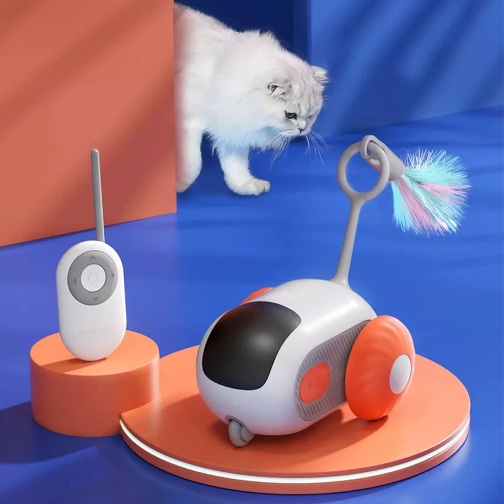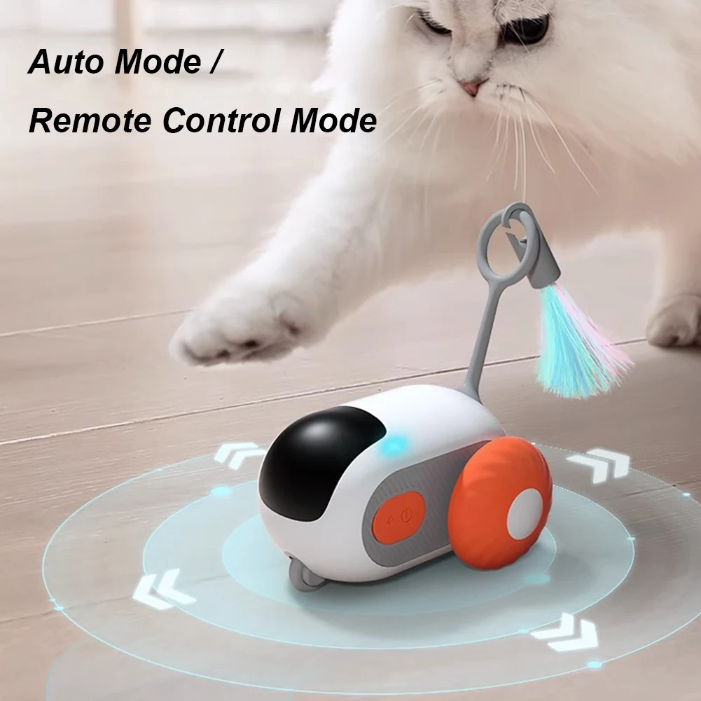 | (Blue/Orange)--Electric Moving Cat Toys | Specification: Origin: Mainland China Color: Blue, Orange Size: Car: 74*67*44mm/2.89*2.61*1.72in Remote Control: 41*16*115mm/1.6*0.62*4.49in Material: ABS Battery: 300mAh How to Switch Smart Mode: Short Press on/off: Start/turn off the sports car. Switching Mode: Hold down the switching button for 3 seconds when the device is powered on. Normal Mode: (green light for 3 seconds) Automatically shuts down after 5 minutes of operation Intelligent Mode: (the blue indicator is on for 3 seconds) After 5 minutes of operation, enter the standby mode and click to activate. Note: Due to the different monitor and light effect, the actual color of the item might be slightly different from the color showed on the pictures. Thank you! Please allow 1-2cm measuring deviation due to manual measurement.