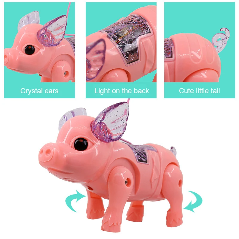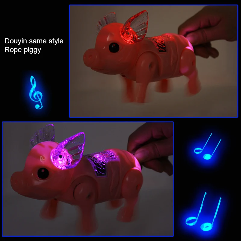 Electric Pulling Rope Pig Batteries Powered Luminous Music Walking Pig Toy Pets Interactive Toys With Light For Children Gifts