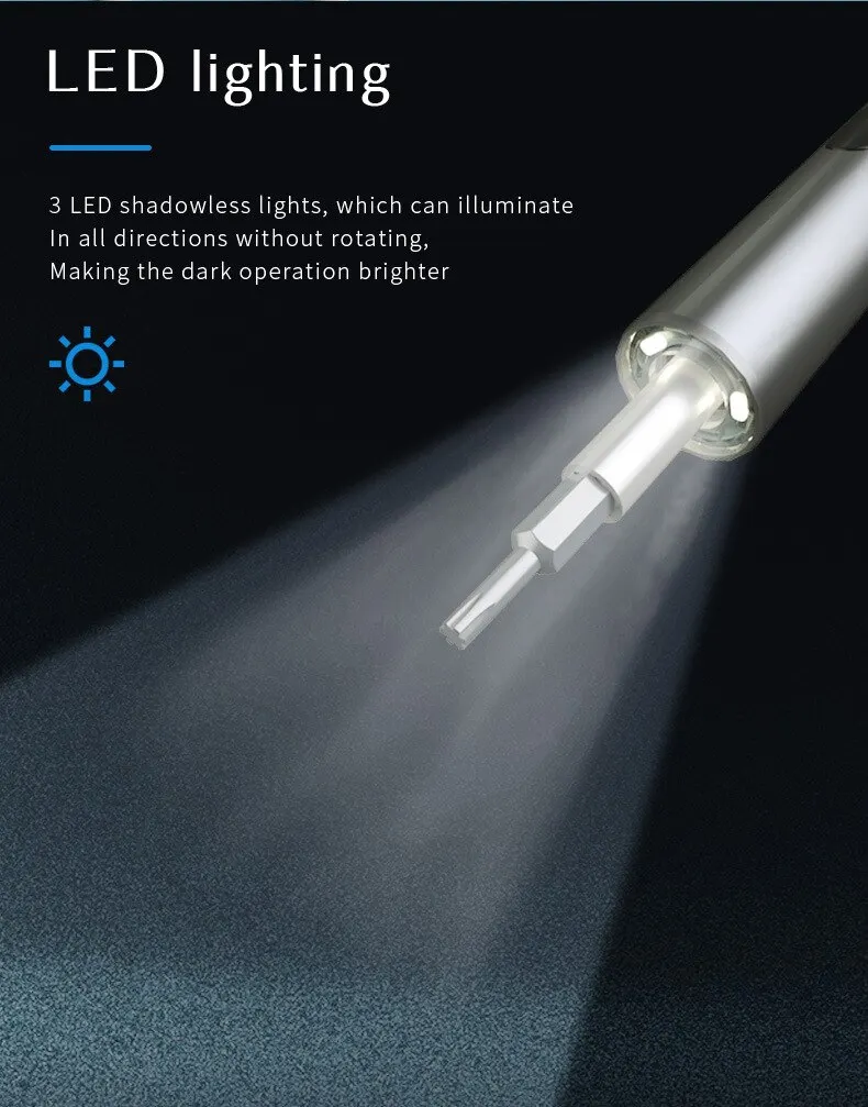 ● Small size, built-in rechargeable lithium battery, long service life and 400+ precision screws can be hit when fully charged.