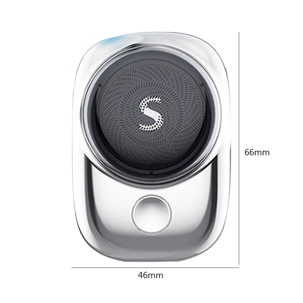 Feature: 1. Precision Shave: This electric shaver uses sharp, stainless steel turbo blades that are specially designed to tackle tough beards with ease. The powerful motor maintains a steady speed even at low power levels, delivering a precise, smooth shave every time. 2. Pain-Free Shaving Guaranteed: Unlike other electric shavers that can cause painful tugging and pulling, this mini electric shaver is designed to prevent hair from getting caught in the blades, ensuring a pain-free and comfortable shaving experience. 3. Compact and Portable: This travel electric shaver is small enough to fit in your jeans pocket, making it easy to carry with you wherever you go. Whether you're traveling by plane, car, or camping, you can always look your best thanks to this compact and portable grooming tool. 4. Durable: Made with high-quality materials and expert craftsmanship, this mini electric shaver is built to last a time. Its sturdy construction ensures that it will withstand daily wear and tear while maintaining its superior performance. 5. Versatile Grooming Tool: Whether you need to shave your beard, legs, chest, or body hair, this mini electric shaver is the perfect grooming tool for both men and women. Its compact size and precision blades make it easy to use on any part of the body, giving you a versatile and effective grooming solution. Specification: Origin: Mainland China Color: Silver, Black, Blue (optional) Size: About 66x46mm/2.59x1.81inch Battery: 250mA
