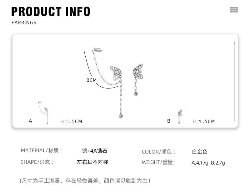 Choose Options Quick view Sparkling Zircon Flower Butterfly Ear Bone Clip for Women Without Piercing Tassel Ear Cuff Clip Earrings Wedding Jewelry $6.03 - $8.58