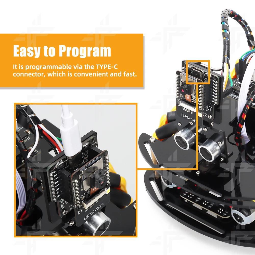 Assembly is a breeze with the ESP32 CAMERA ROBOT KIT, with no need for welding the circuit and easy-to-install terminal connection ports. The assembly manual is also matched to ensure efficient and clear assembly.
