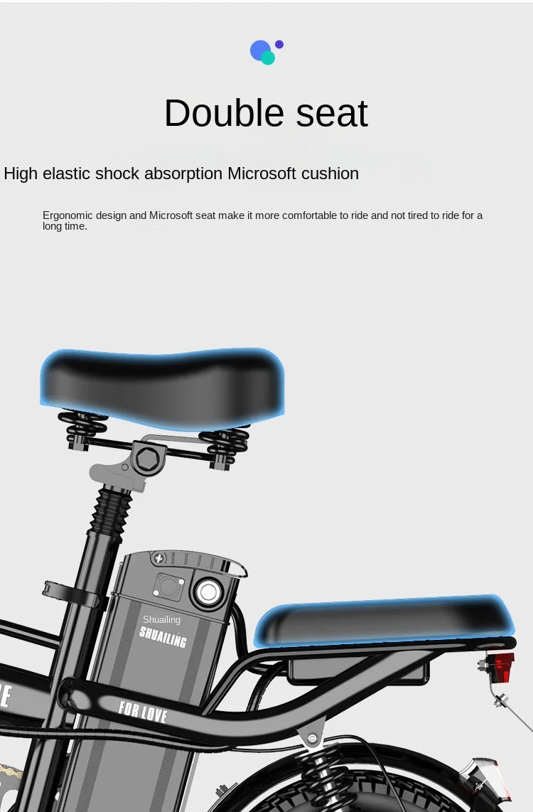 Our electric bikes are made of high-quality materials to ensure their durability and reliability. Shuailing factory lithium battery electric bicycle is equipped with a charger, which is simple and convenient to charge, so that you can ride at any time.