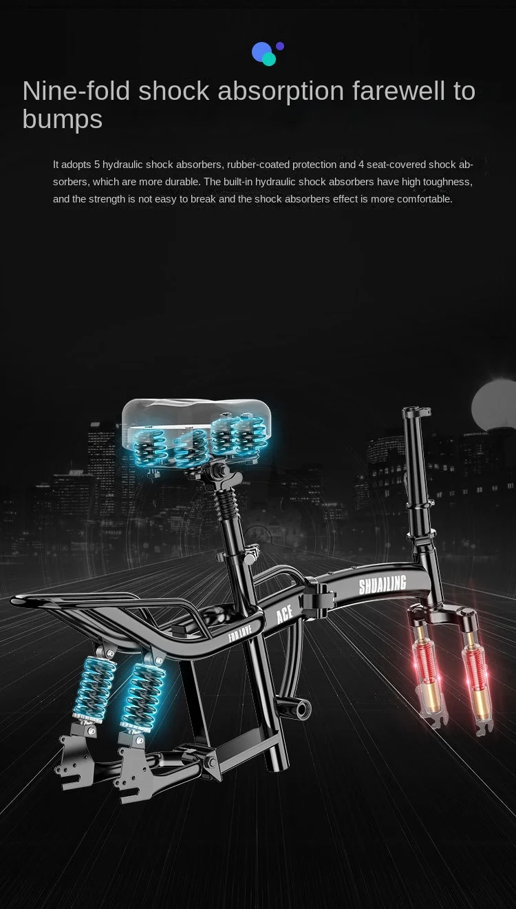This foldable electric bike was designed with convenience in mind. It folds easily and stores in tight spaces, making it ideal for those with limited storage space at home or who need to transport it by car or public transport. Plus, its variable speed setting allows you to adjust the speed to your liking or road conditions.