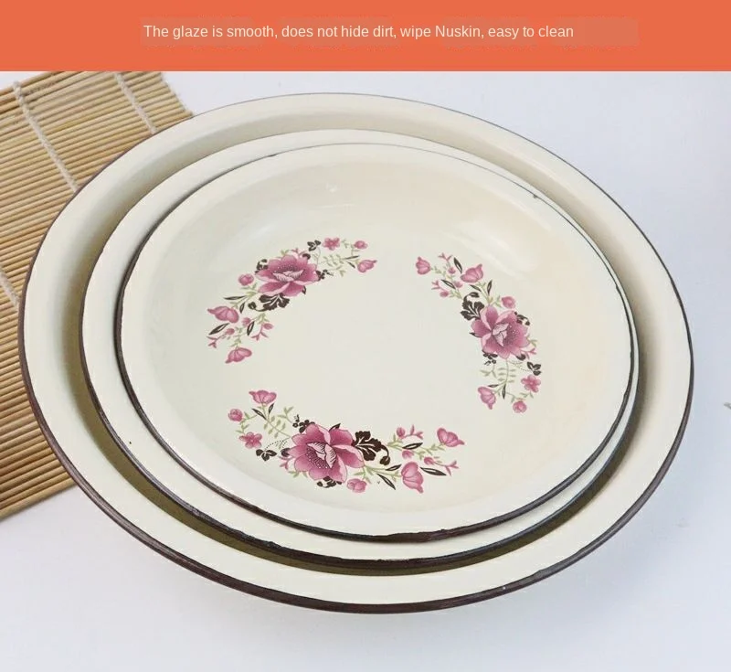 Choose Options Quick view 20/22/24 cm Antique Enamel Bowl Food Basin Easy Clean Dishes Large Capacity Thick Storage Plate Home Restaurant Kitchen Supply $742.70 - $1,063.47