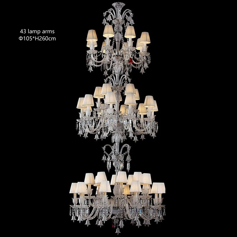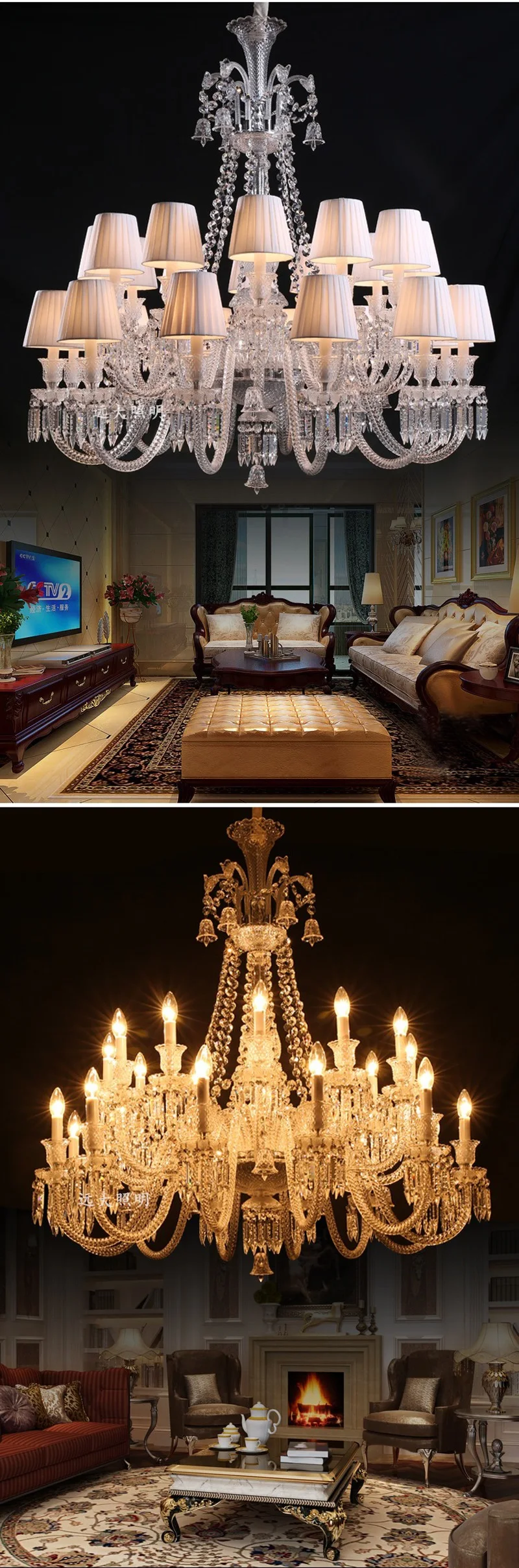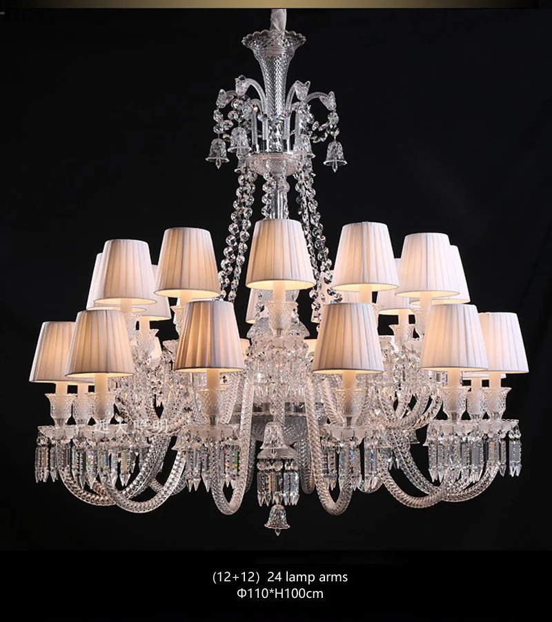 Material:polish chrome metal + glass arms+crystal+fabric shade