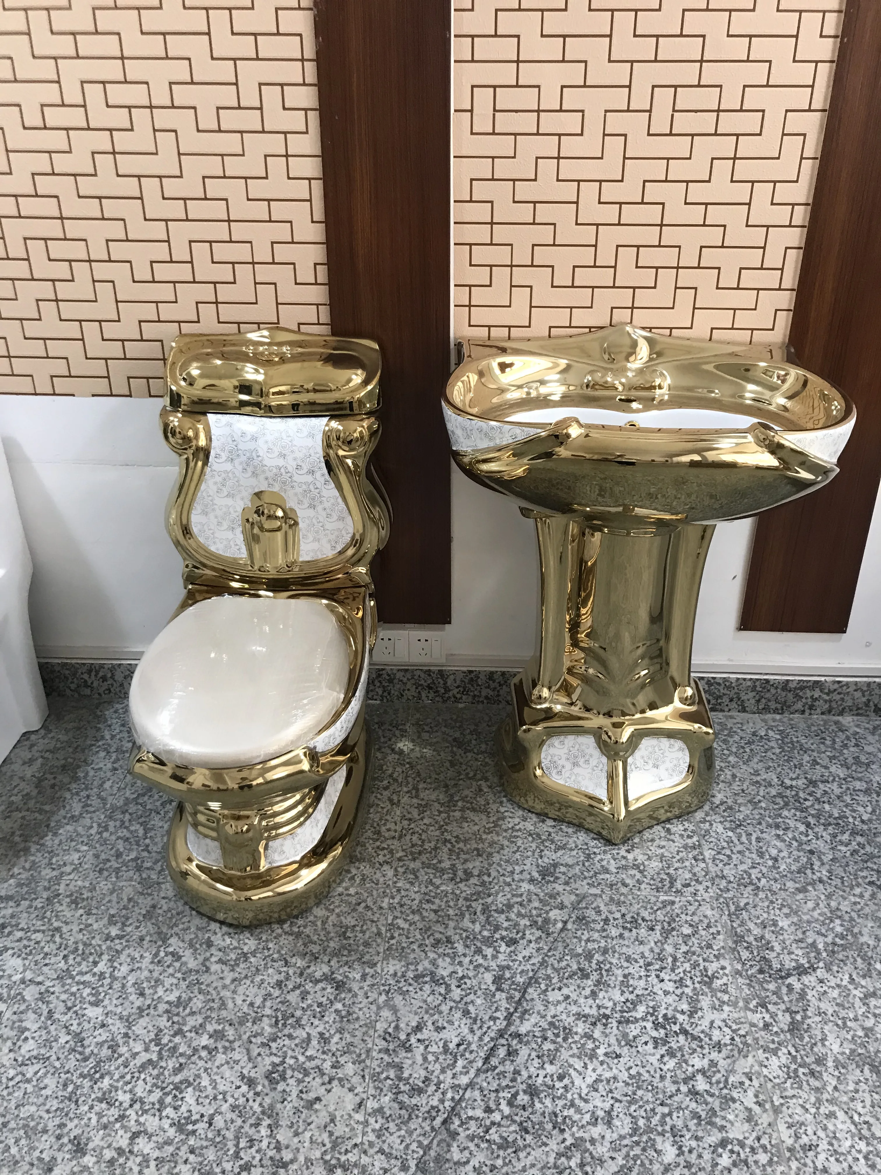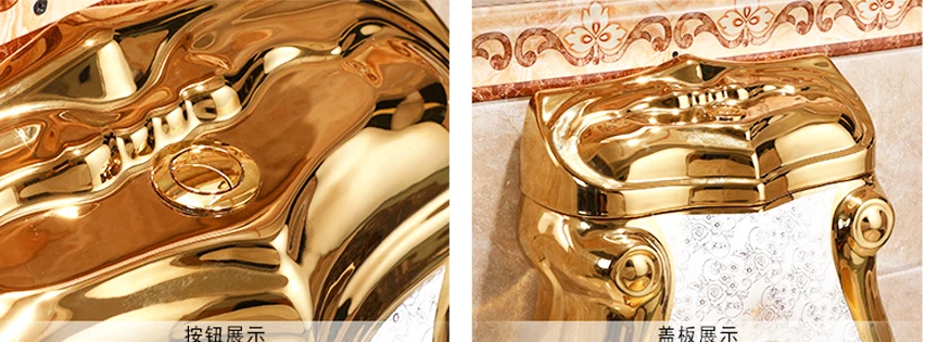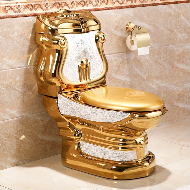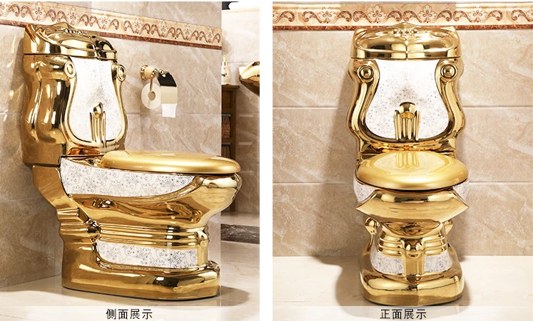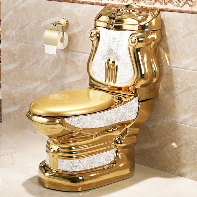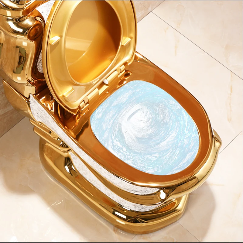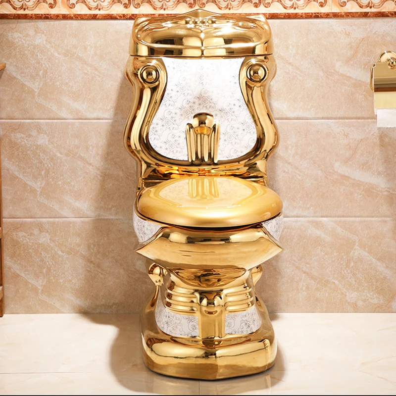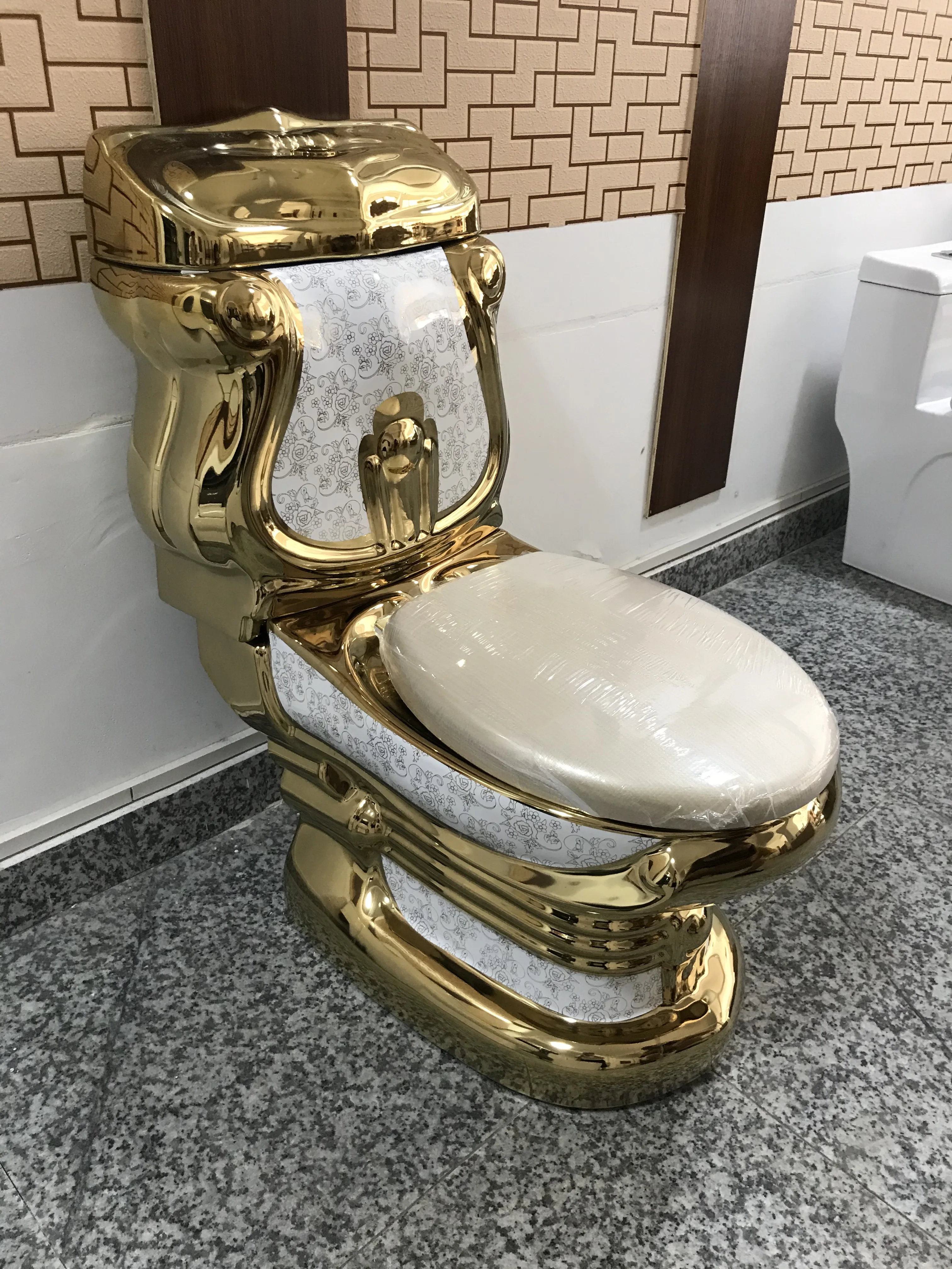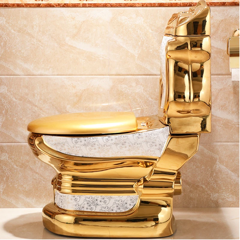 European Style Luxury Bathroom Golden WC Two Pieces Ceramic Gravity Flushing Toilet Set