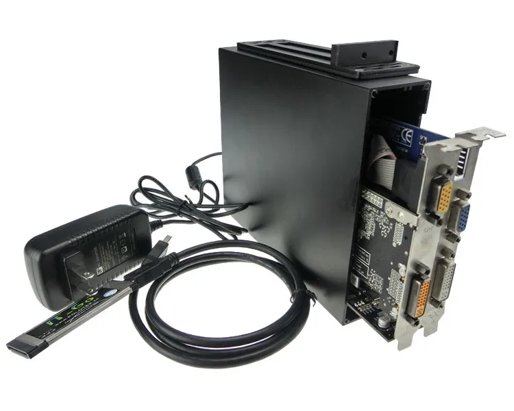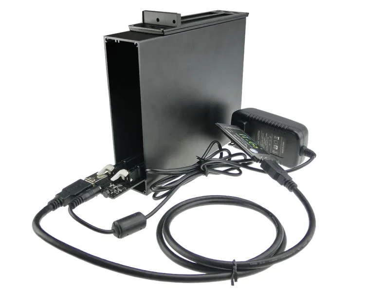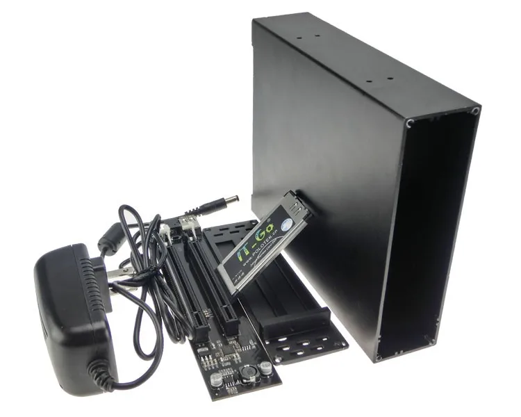 The power (12V, 5V, 3.3V, -12V) for each PCI expansion board is supplied via a 12V/2A power adapter attached.