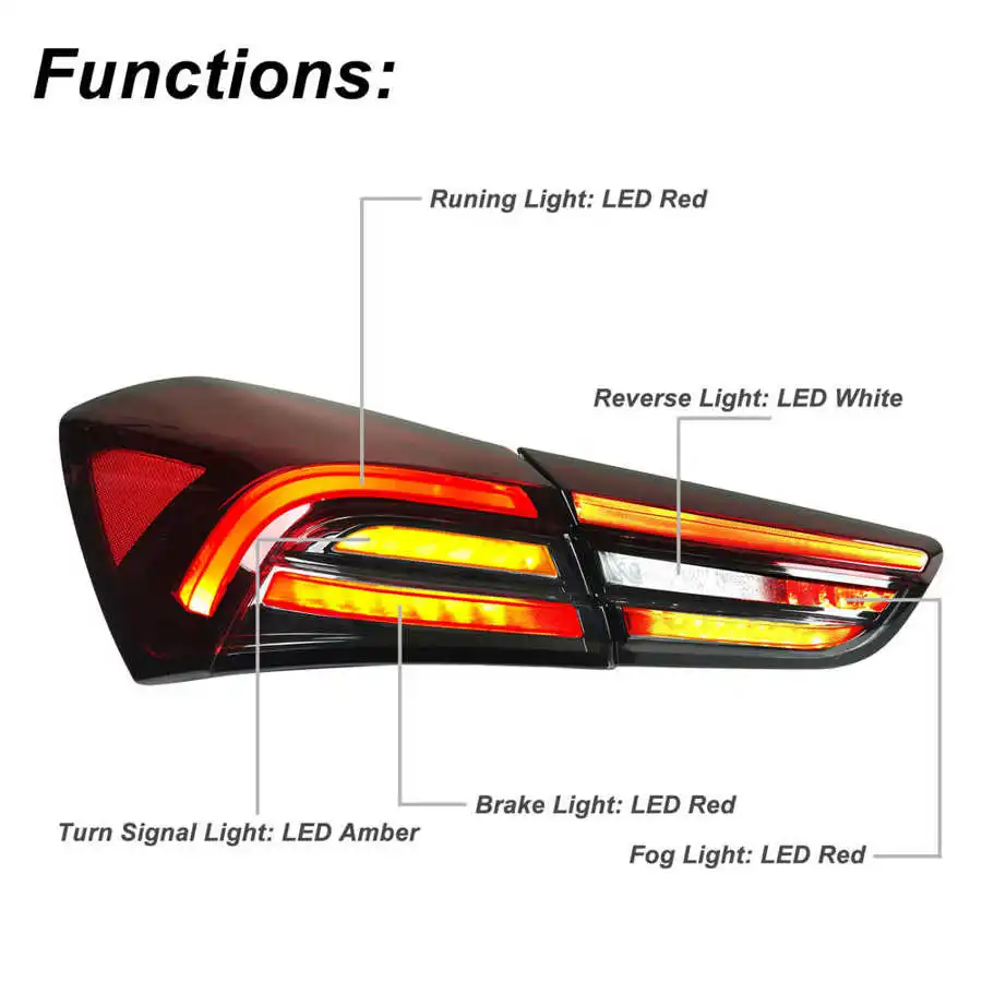 2. Function: The LED tail lights have the function of turning signal, brake, running, reverse and fog light, with different color design ensure high performance.