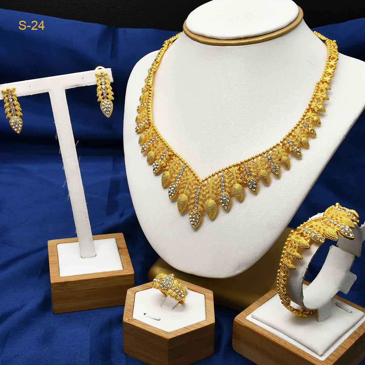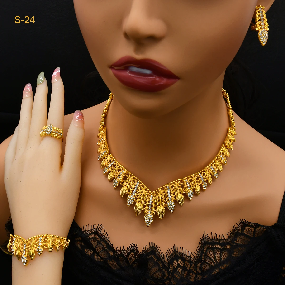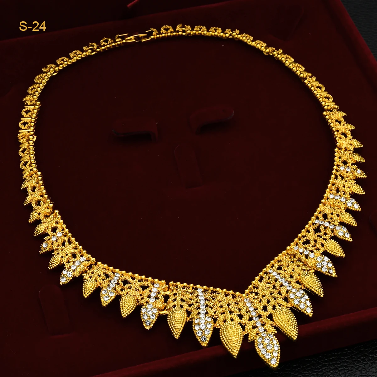 Description Description Fashion Gold Color New Crystal Charm Jewelry Set For Lady Nigerian Wedding Bridal Luxury 24k Necklace Sets Dubai Wholesale Gifts View AllClose