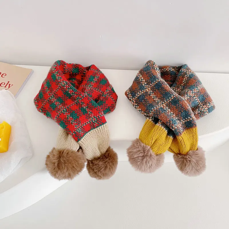 Choose Options Quick view Kids Scarf New Autumn and Winter Color-blocking Plaid Children's Knitted Scarf Warm Woolen Scarf for Boys and Girls $16.13 Size: 16x108cmRecommended for babies aged 2-6