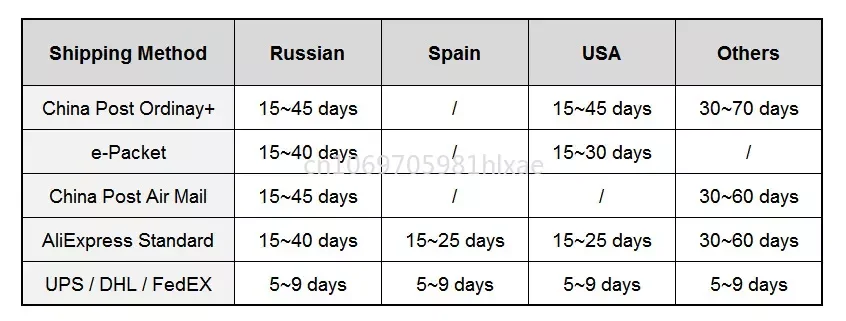 For 80% countries, When your order is over USD 120 , we ship it via Fast Express such as DHL we offer the most reasonable price and shipping services |
