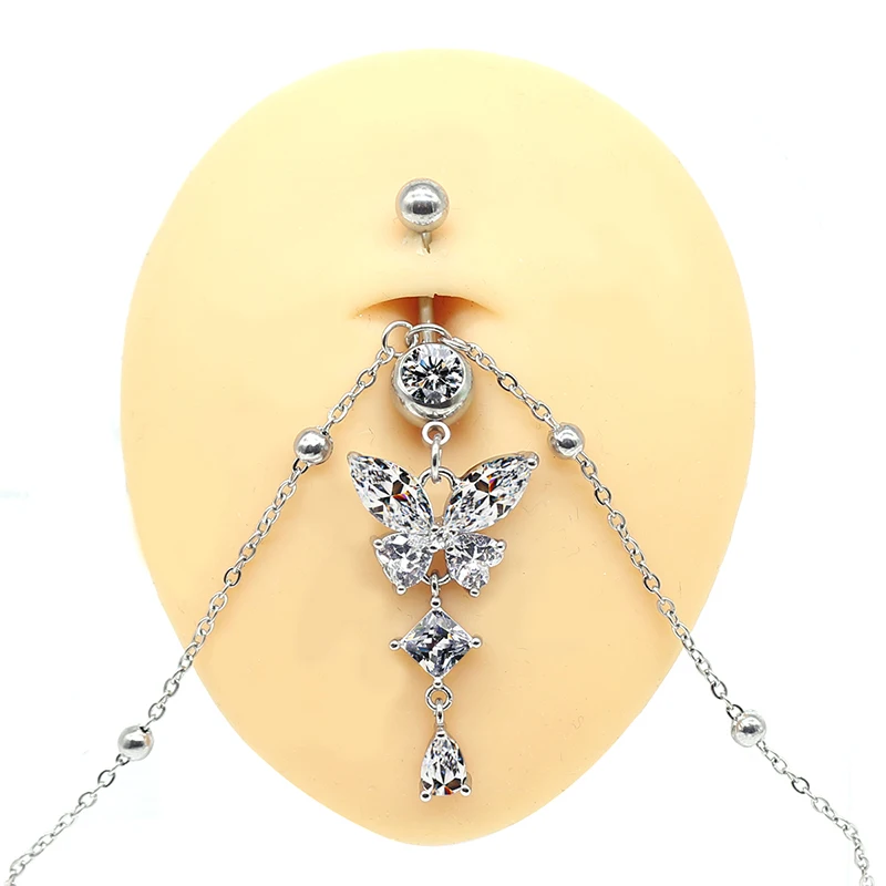 Choose Options Quick view 1PCS Stainless Steel Crystal Chain Belly Button Ring 14G Women Sexy Chain Navel Piercing Jewelry Waist Chain Piercing Belly Ring $4.10 - $20.44