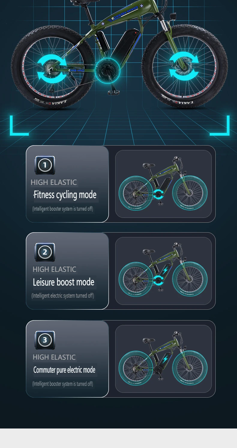 FEIVOS S6 Fat tire Electric Bicycle 26"Lithium battery electric bike for adults 1000W Mountain E bike
