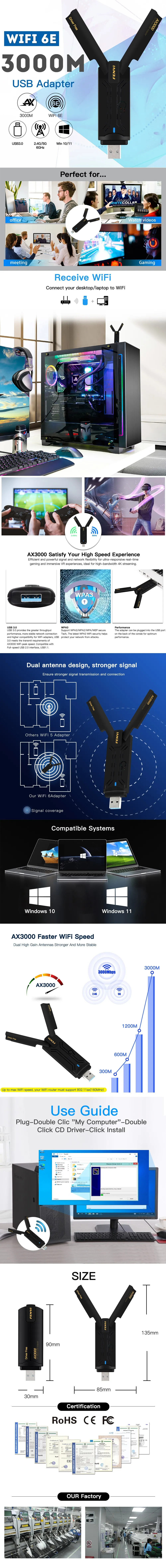 Fenvi WiFi WiFi 6 USB Dual Band Adapter ax1800 2.4ggggHz Wireless WiFi Dongle Network Card USB 3.0