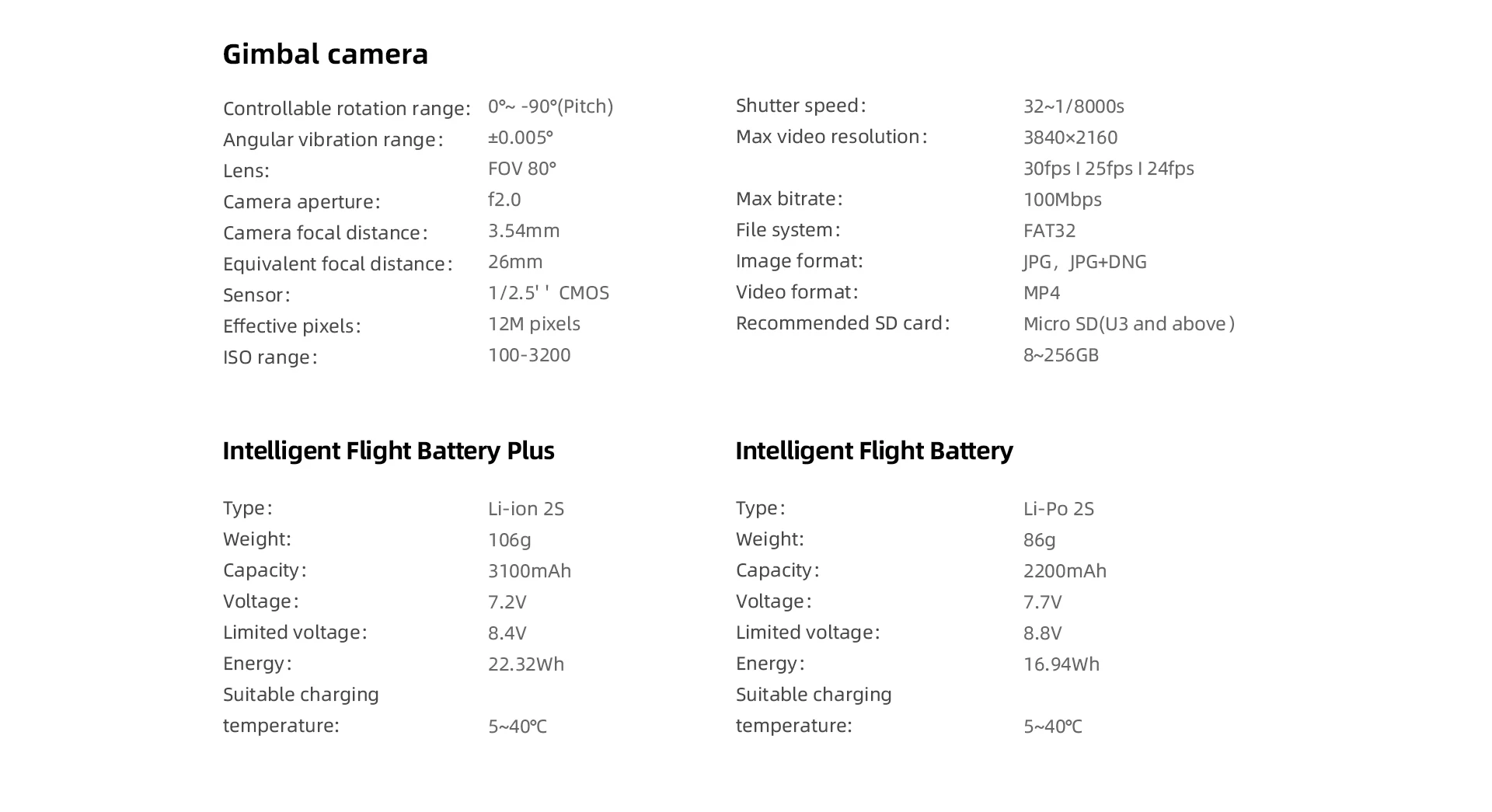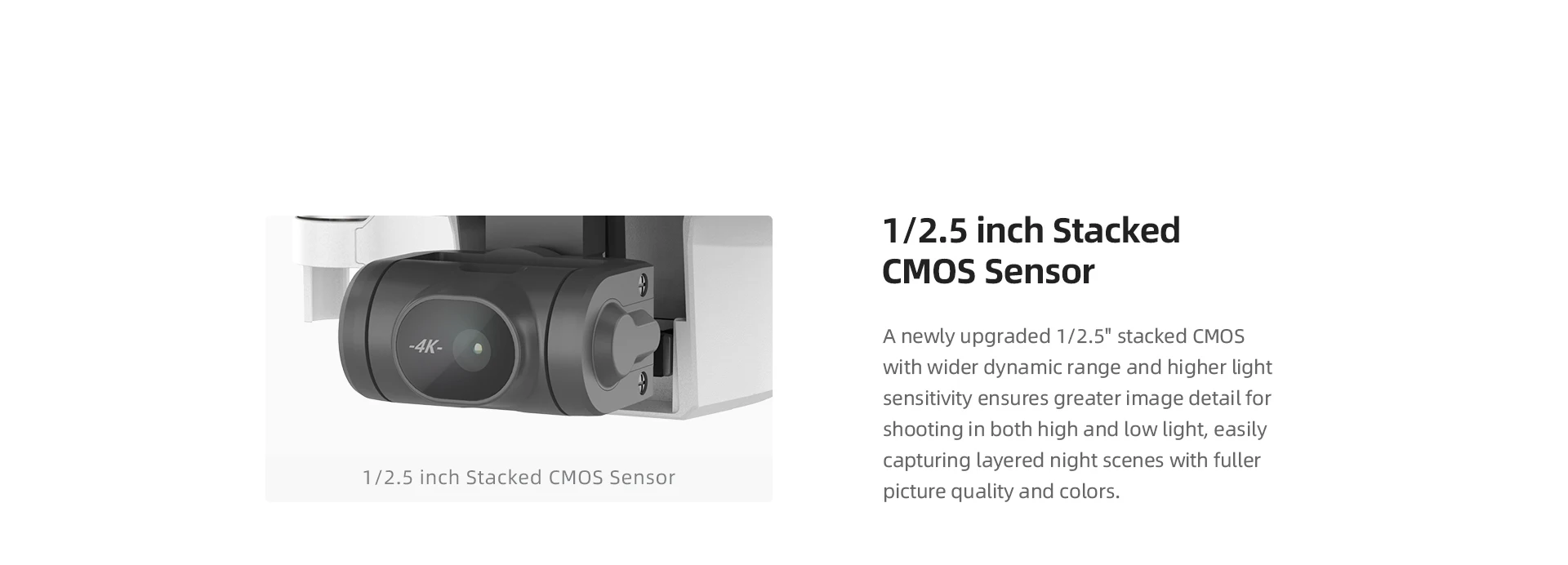 7. Sony 1/2 ''CMOS Sensor:The upgraded Sony 1/2" CMOS sensor, bringing a large 1.6um pixel size based on the "Quad Bayer" pixel technology, can effectively reduce noise during nighttime aerial filming.