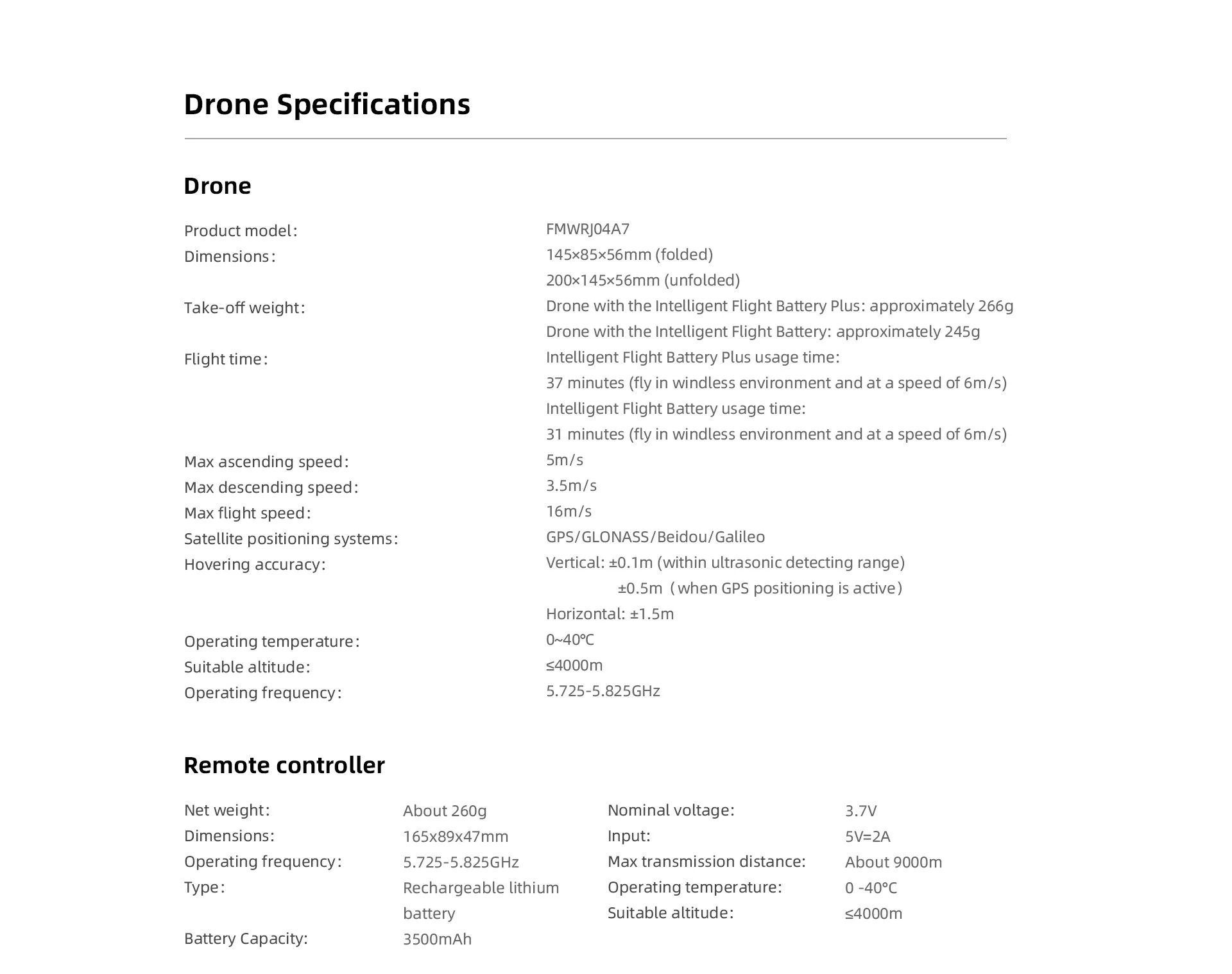 Function: 4K 100Mbs Videos, 10KM distance, 3-axis Gimbal, Smart Tracking Mode, super Night Scene Shooting, RemoteID