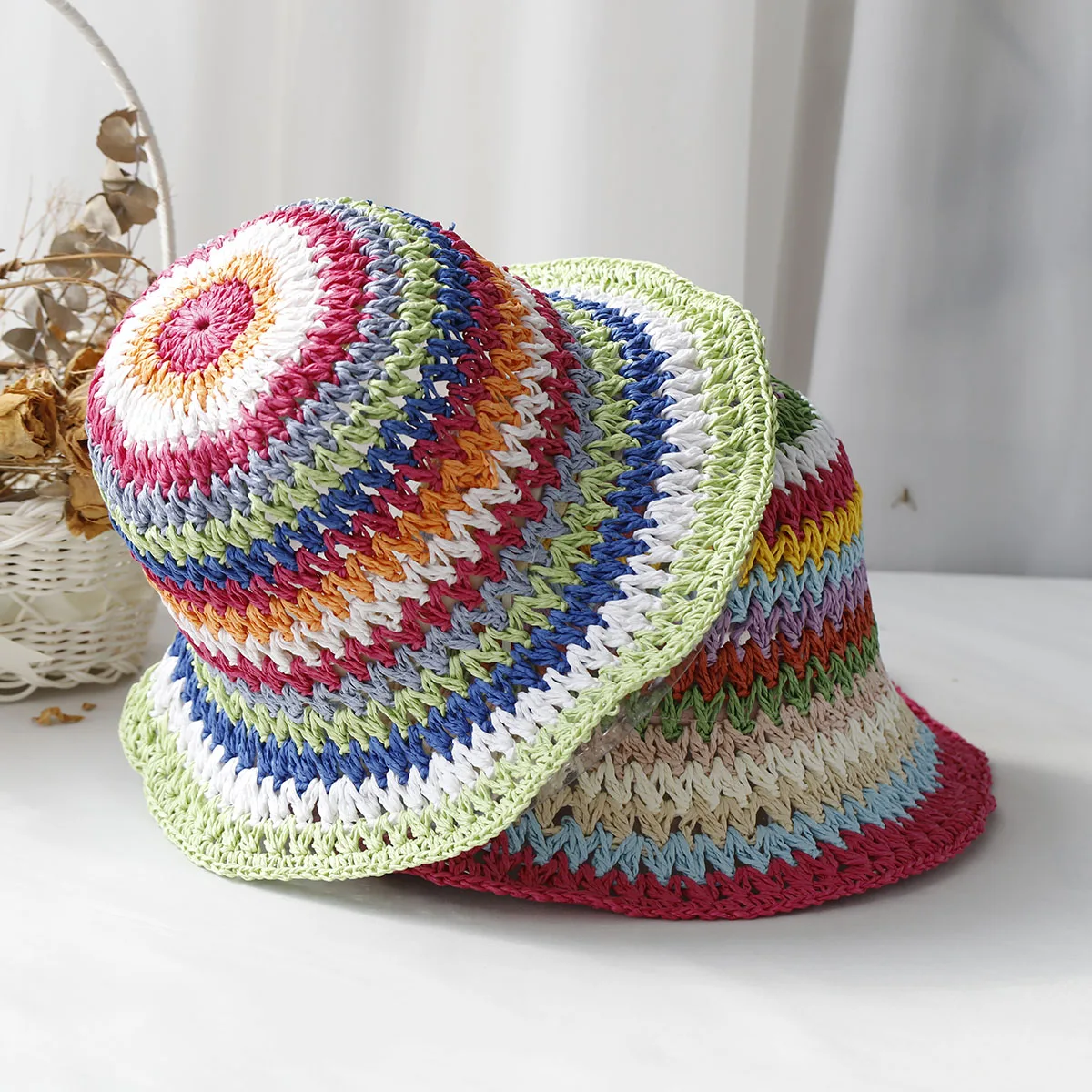 Choose Options Quick view 2024 Fisherman's Womens Straw Hats crochet bucket hat UV Protection Sun Visor beach hat Women Visors rainbow Women Summer Cap $15.80 - $16.48